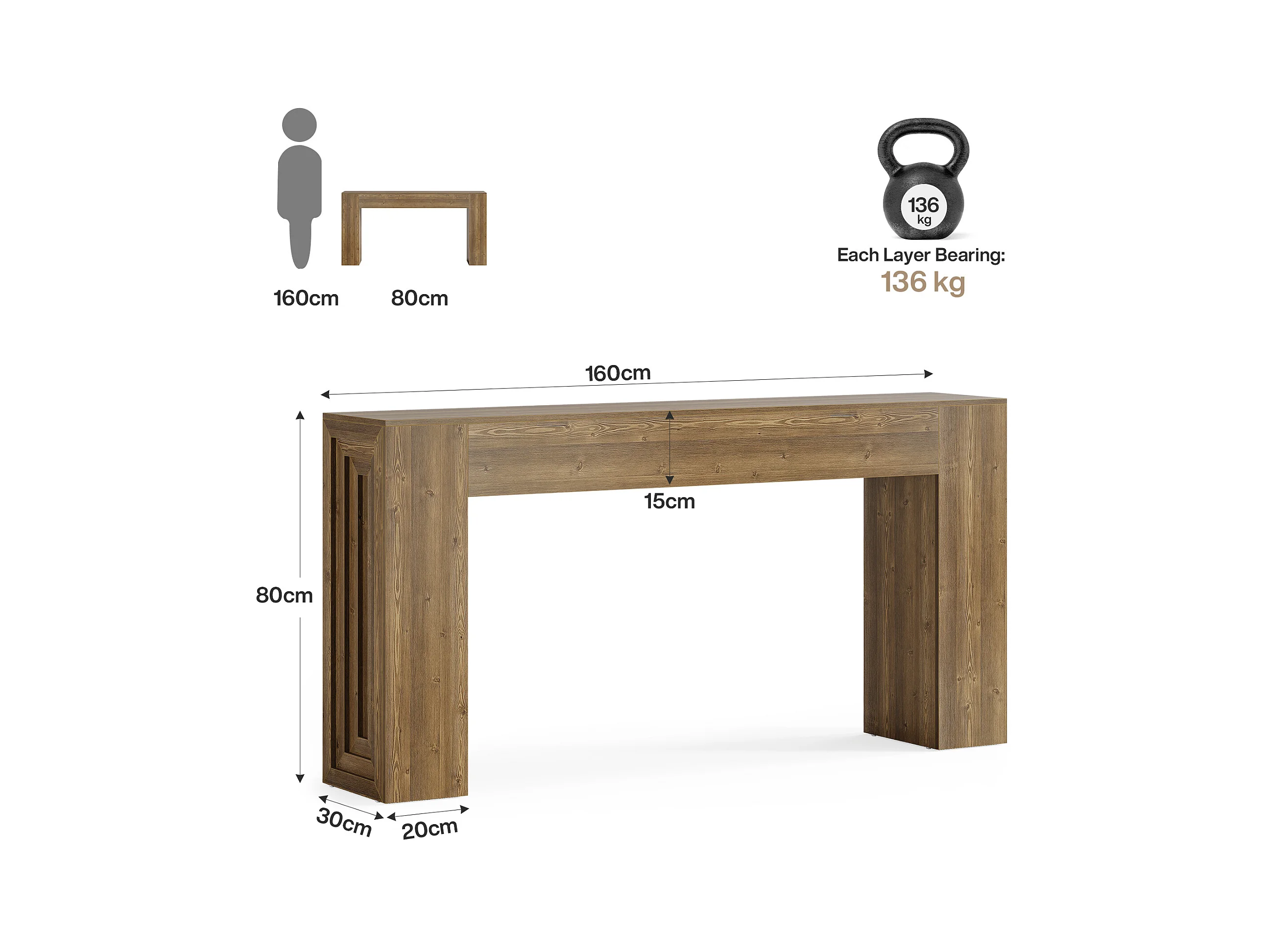 Console d'entrée de 150 cm, table de canapé longue et étroite à 2 niveaux derrière le canapé pour le salon