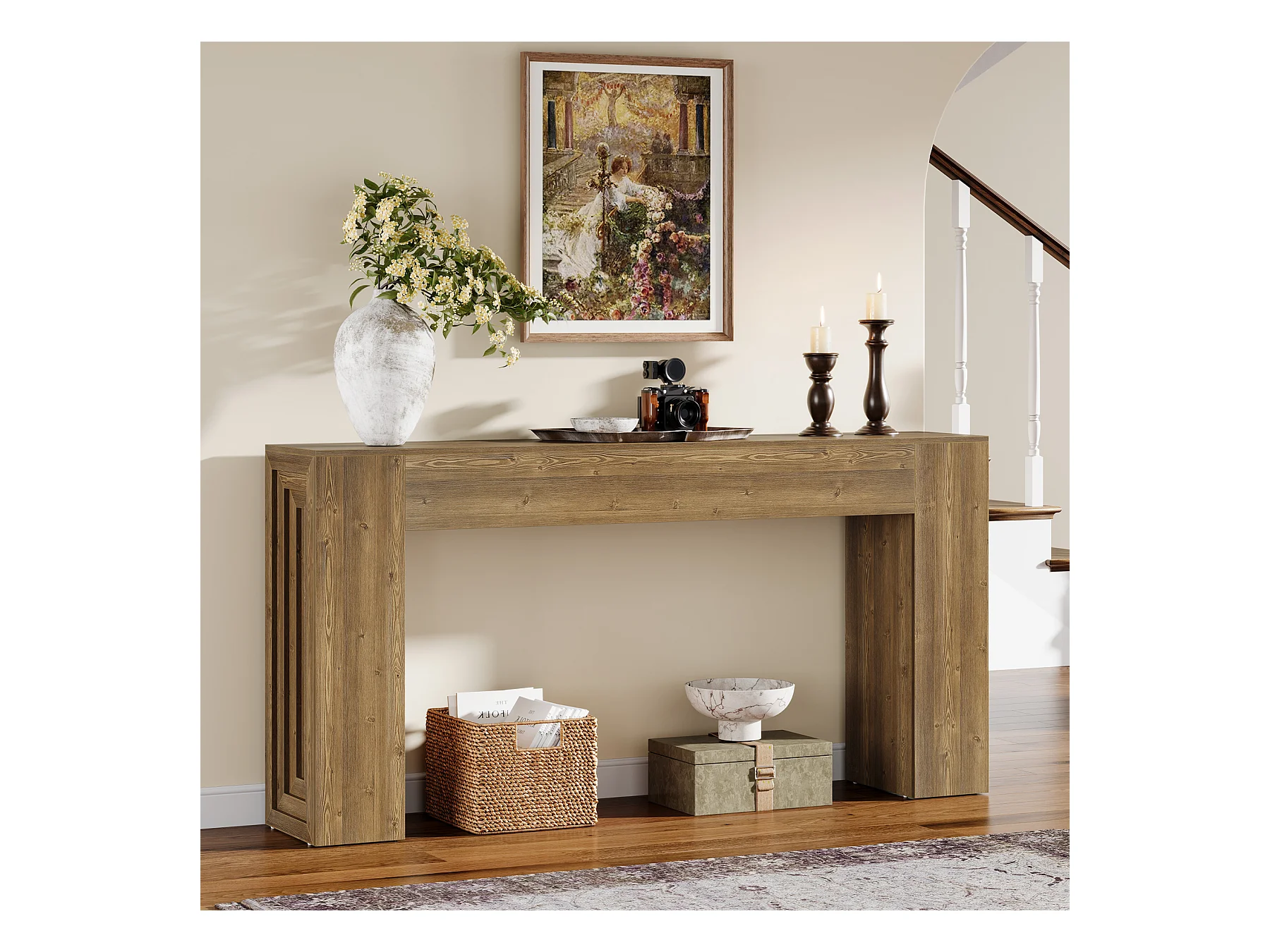 Console cannelée de style ferme pour entrée, table de canapé de 160 cm de long derrière le canapé