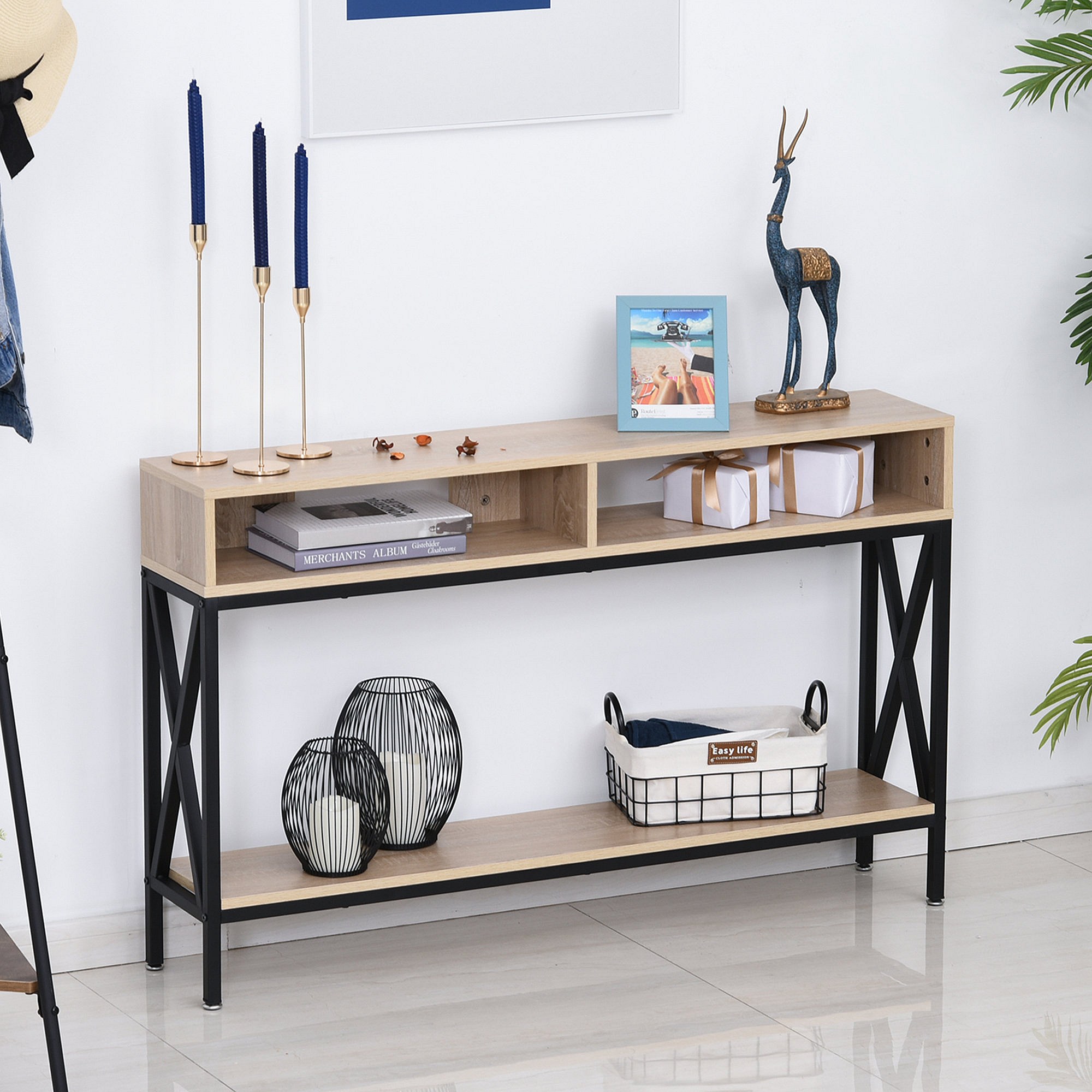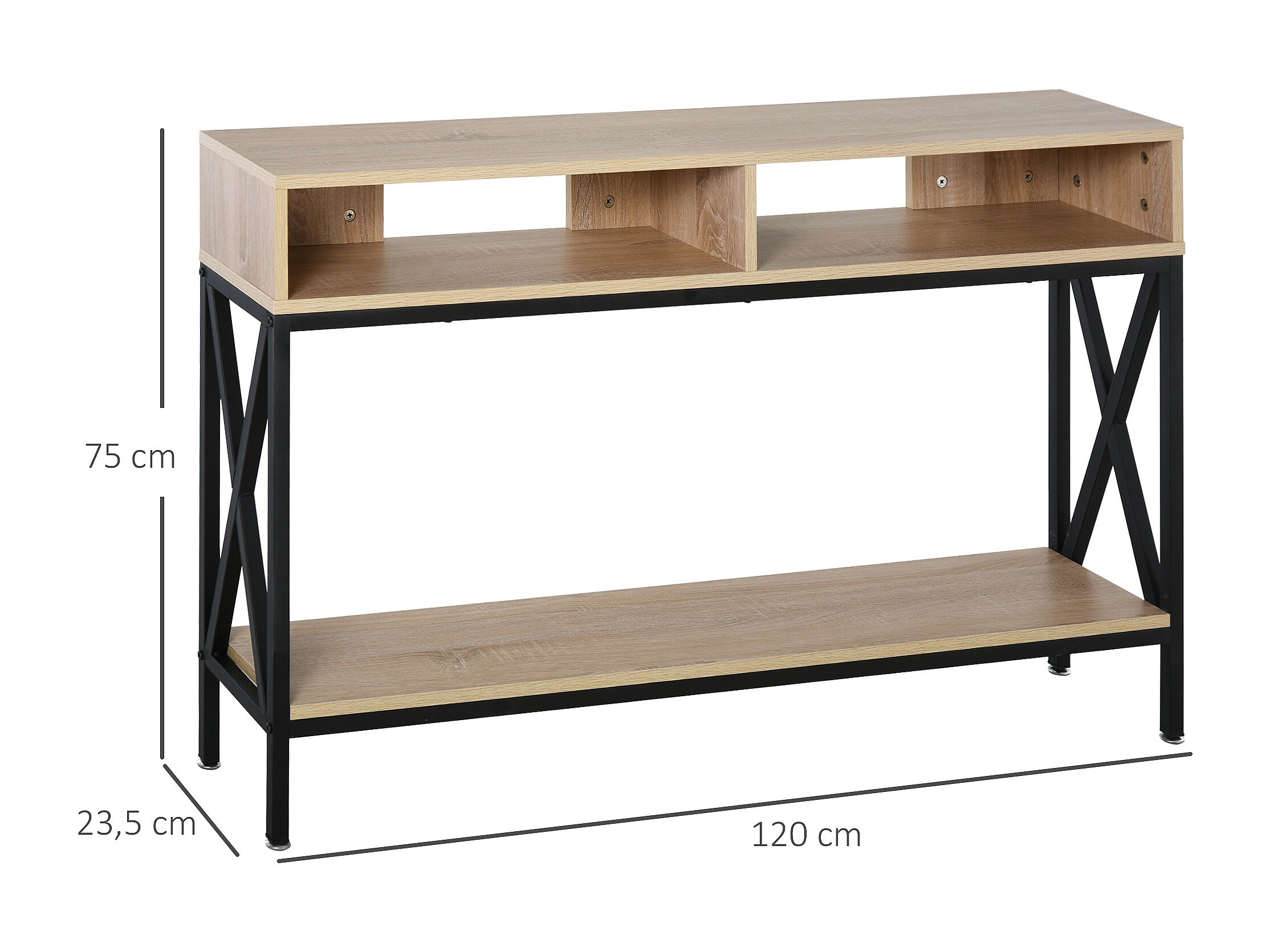 Table Console Table d'Entrée Industriel Multi-rangements 120 x 23,5 x 75 cm Bois Chêne