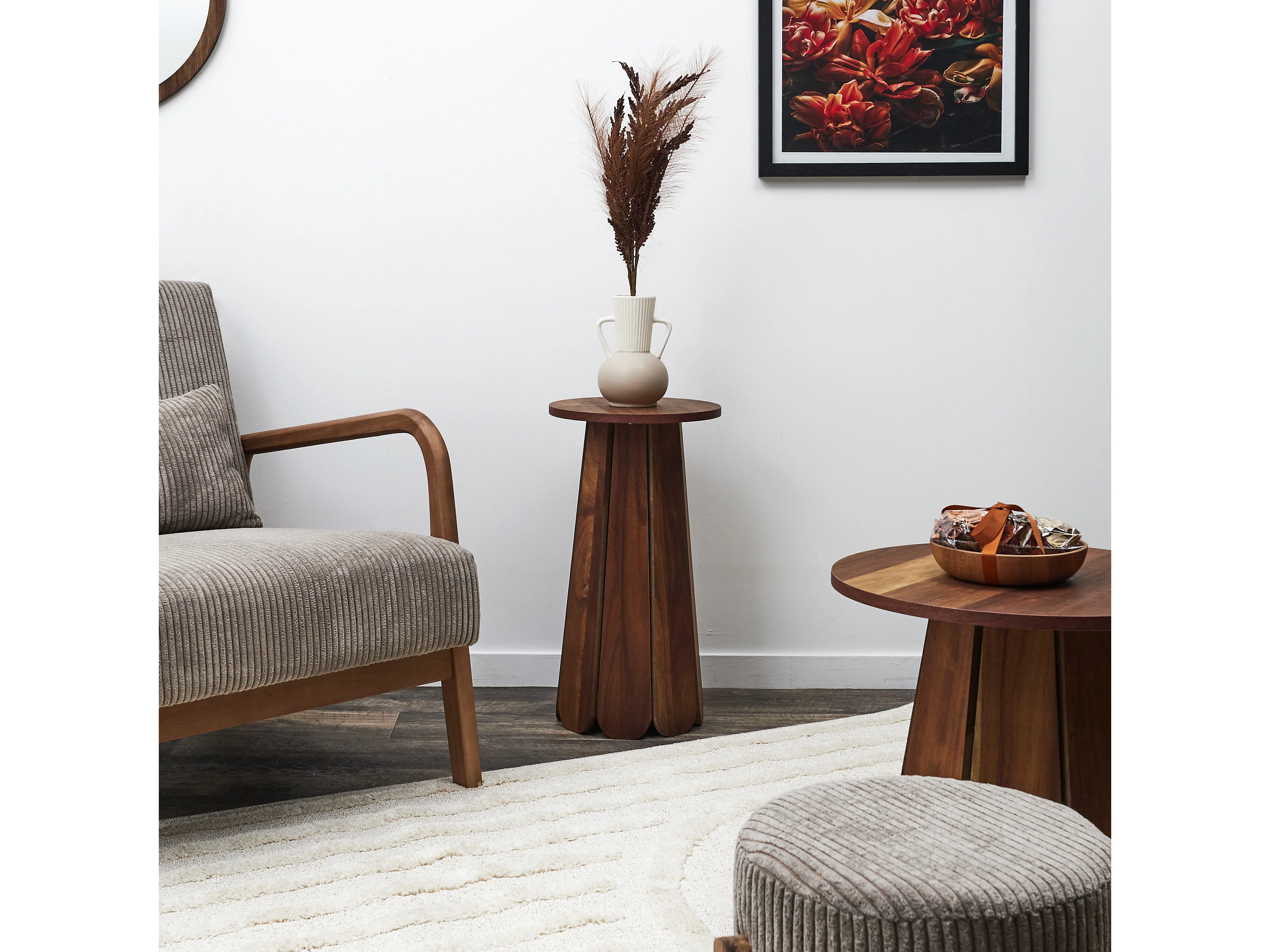 DUBLIN - Table d'appoint Ronde Pied Central Relief MDF Placage Chêne fumé