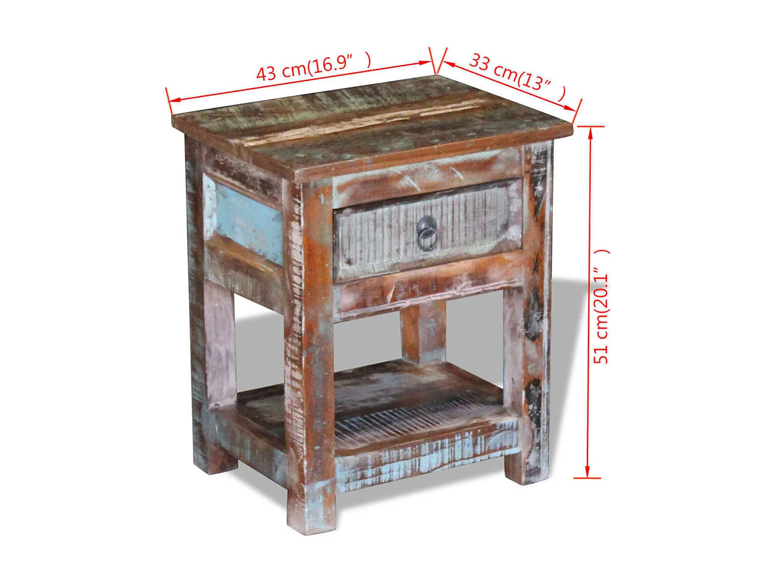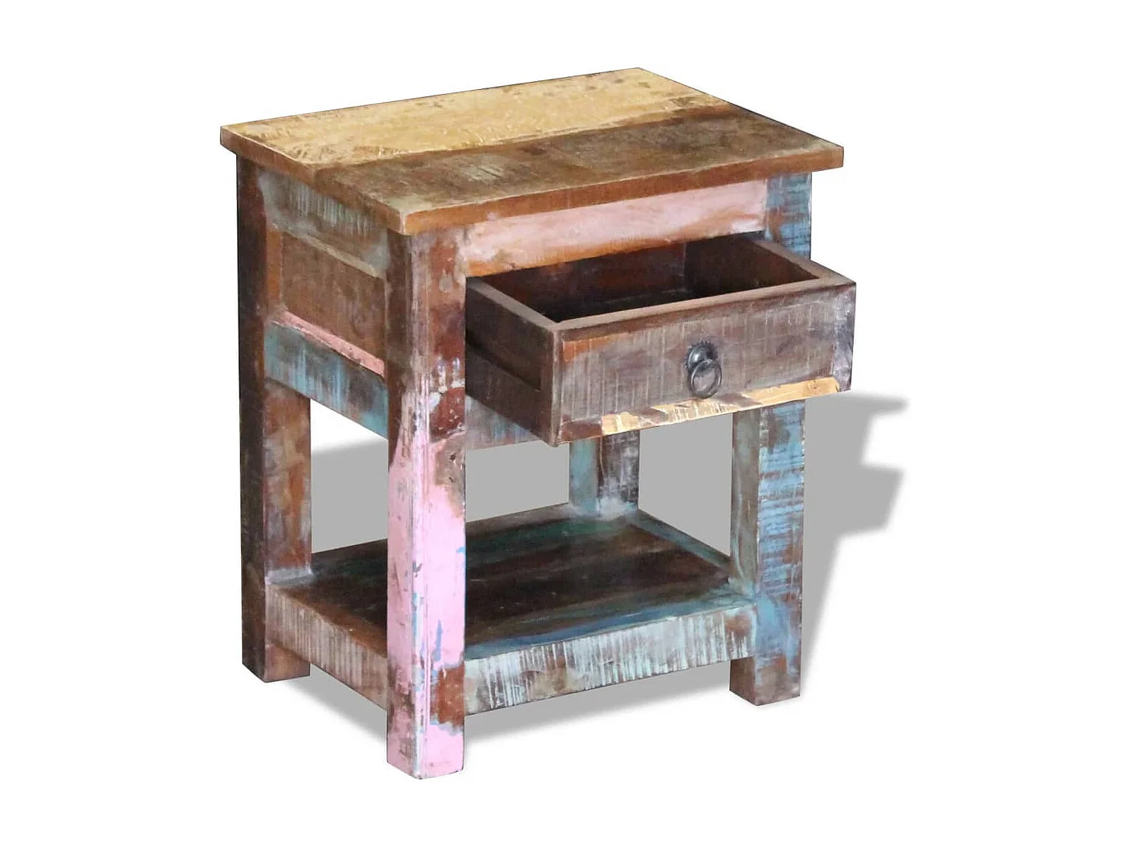 Table d'appoint 1 tiroir Bois de récupération massif 43x33x51cm