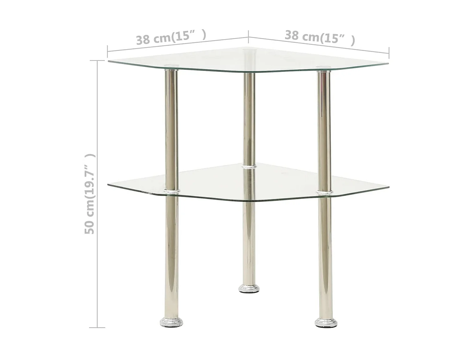 Table d'appoint à 2 niveaux Transparent 38x38x50 Verre trempé 2