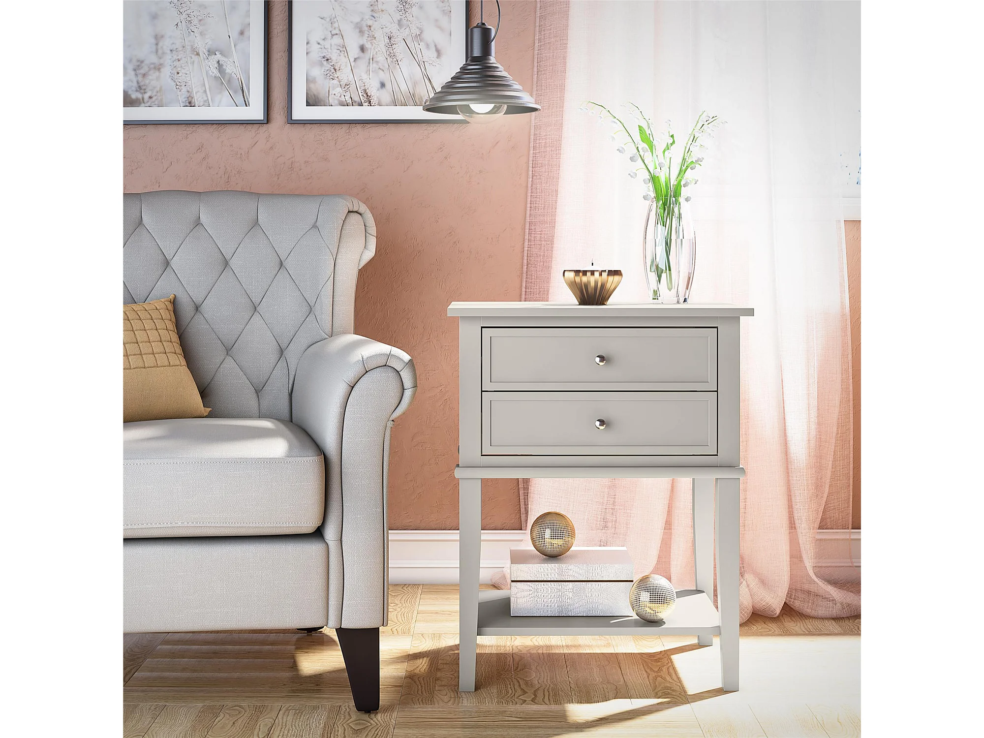 Franklin | Table d'appoint avec 2 tiroirs en MDF taupe