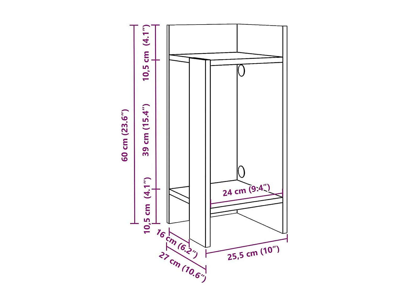 Table d'appoint avec étagère sonoma gris 25,5x27x60 cm