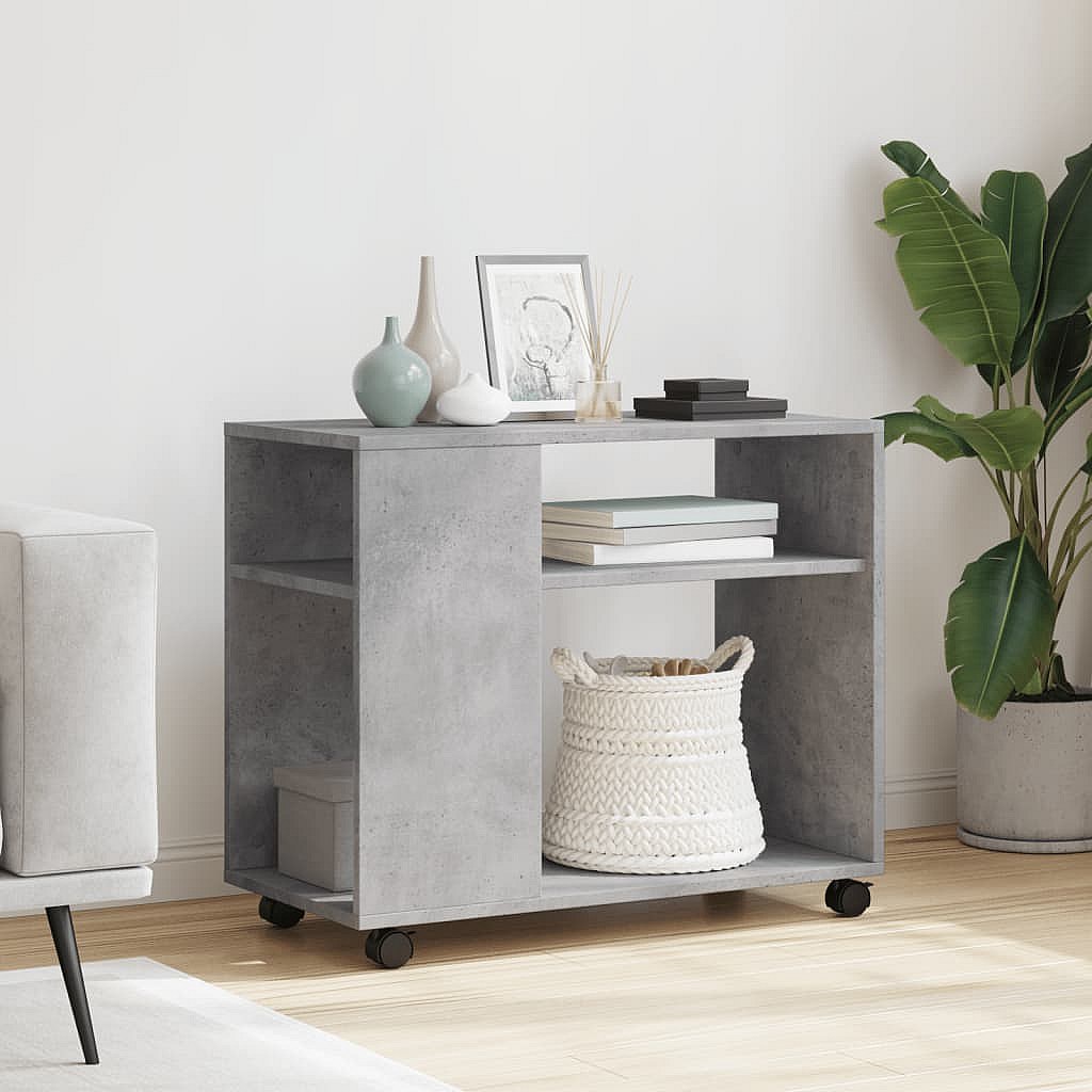 Table d'appoint avec roues gris béton bois d'ingénierie