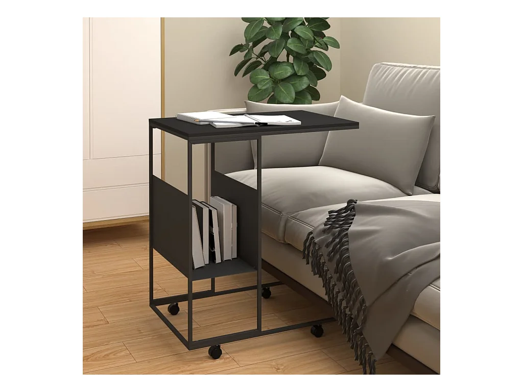 Table basse avec roues Noir 55x36x63,5 cm Bois d'ingénierie GHR86204