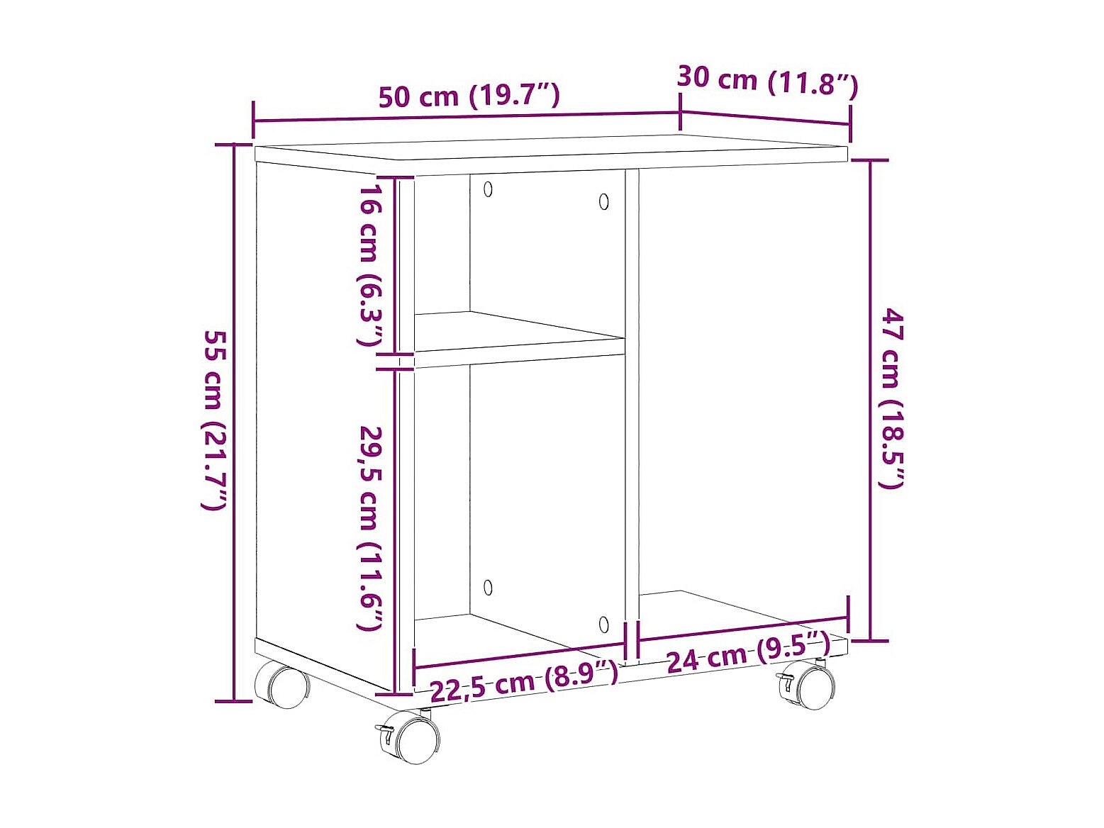 Table d'appoint avec roues chêne sonoma bois d'ingénierie