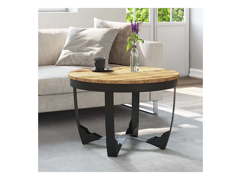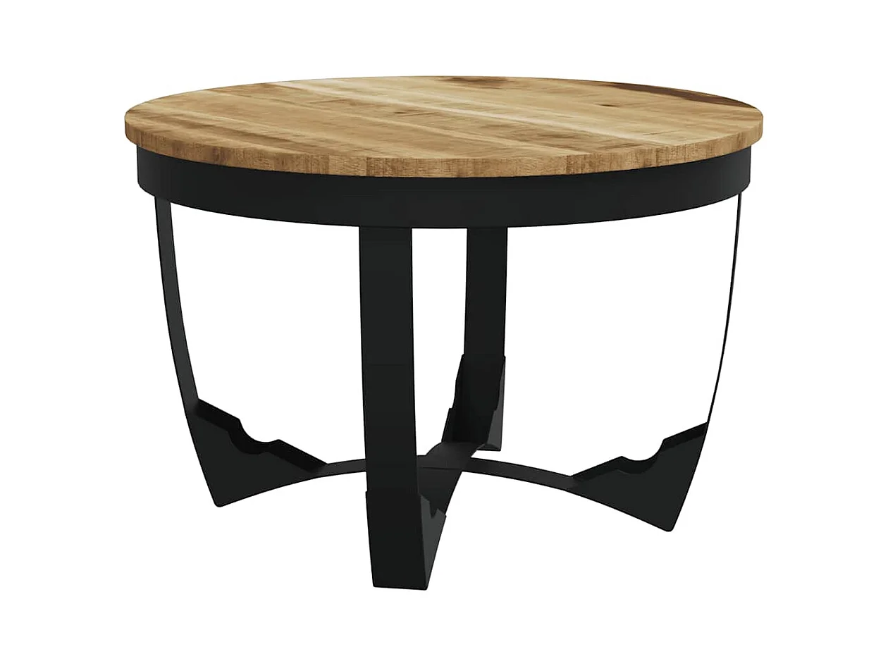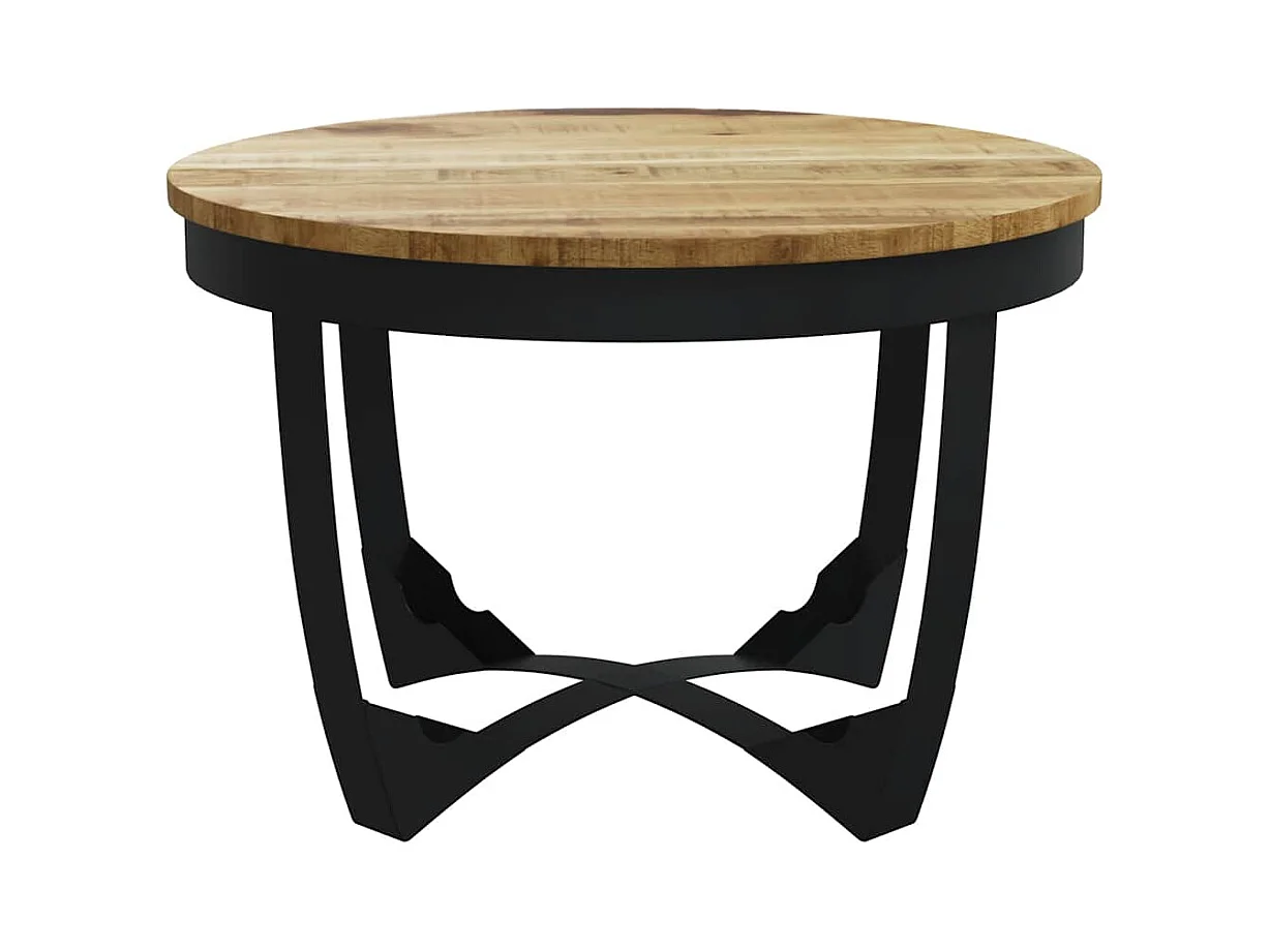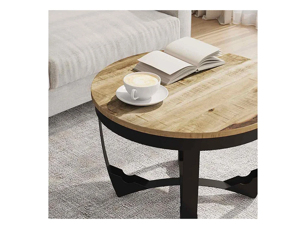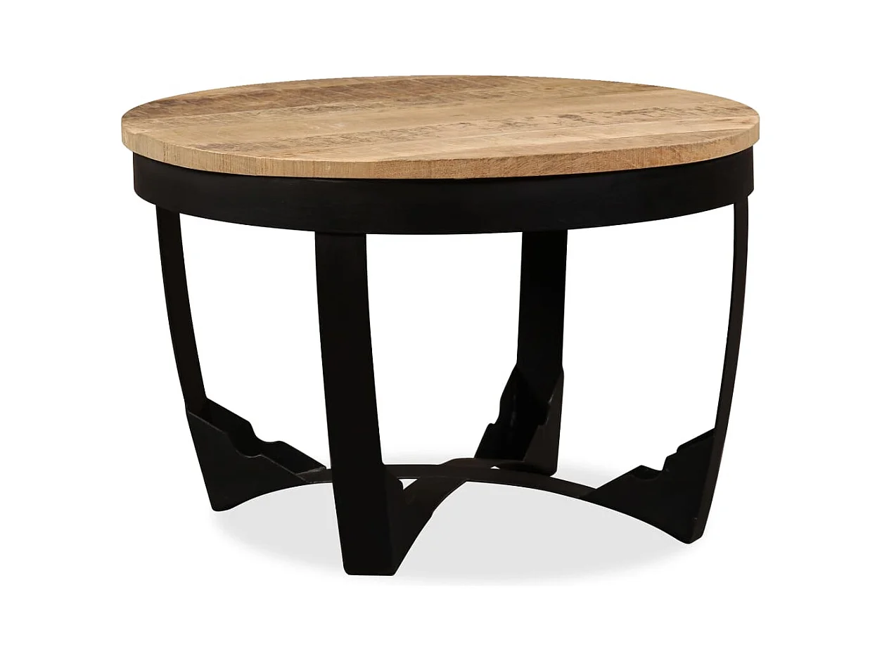 Table basse ronde manguier massif clair et pieds métal noir Dink