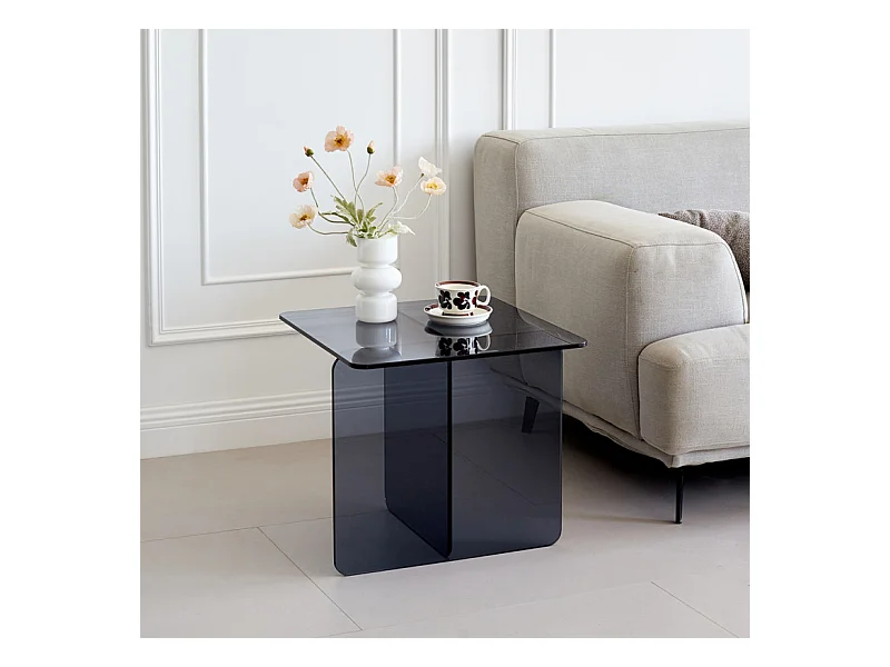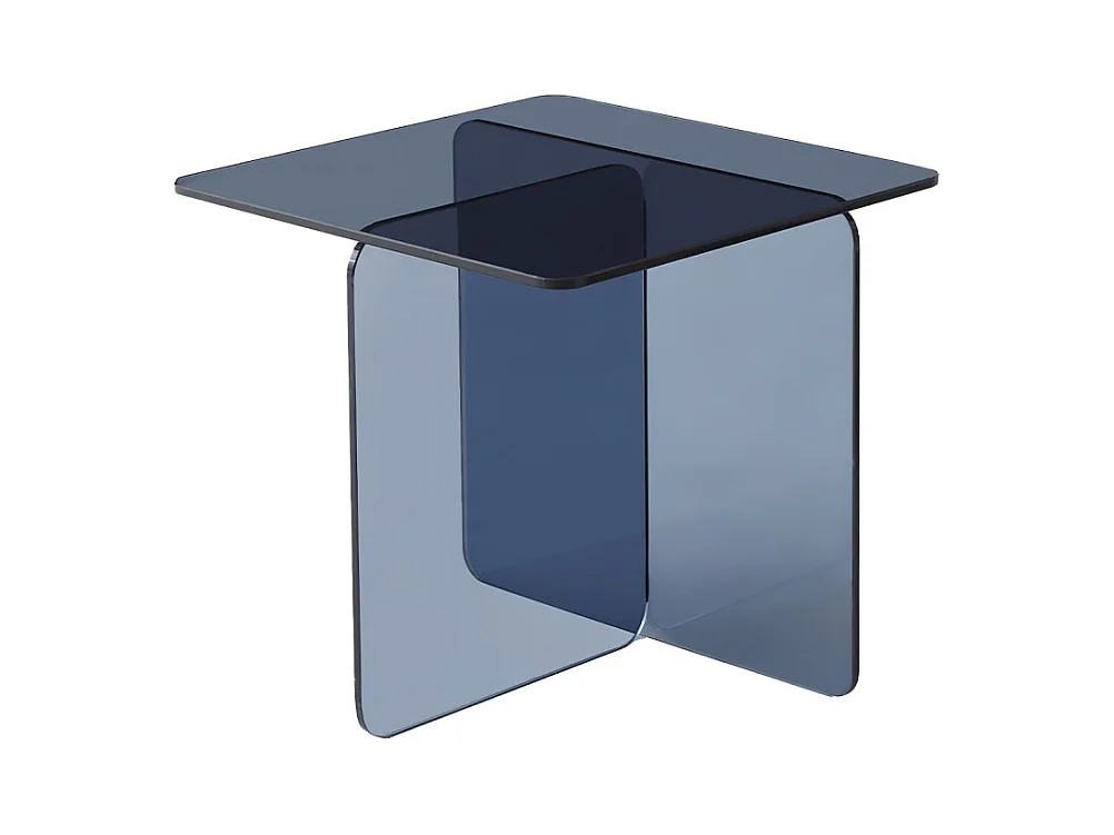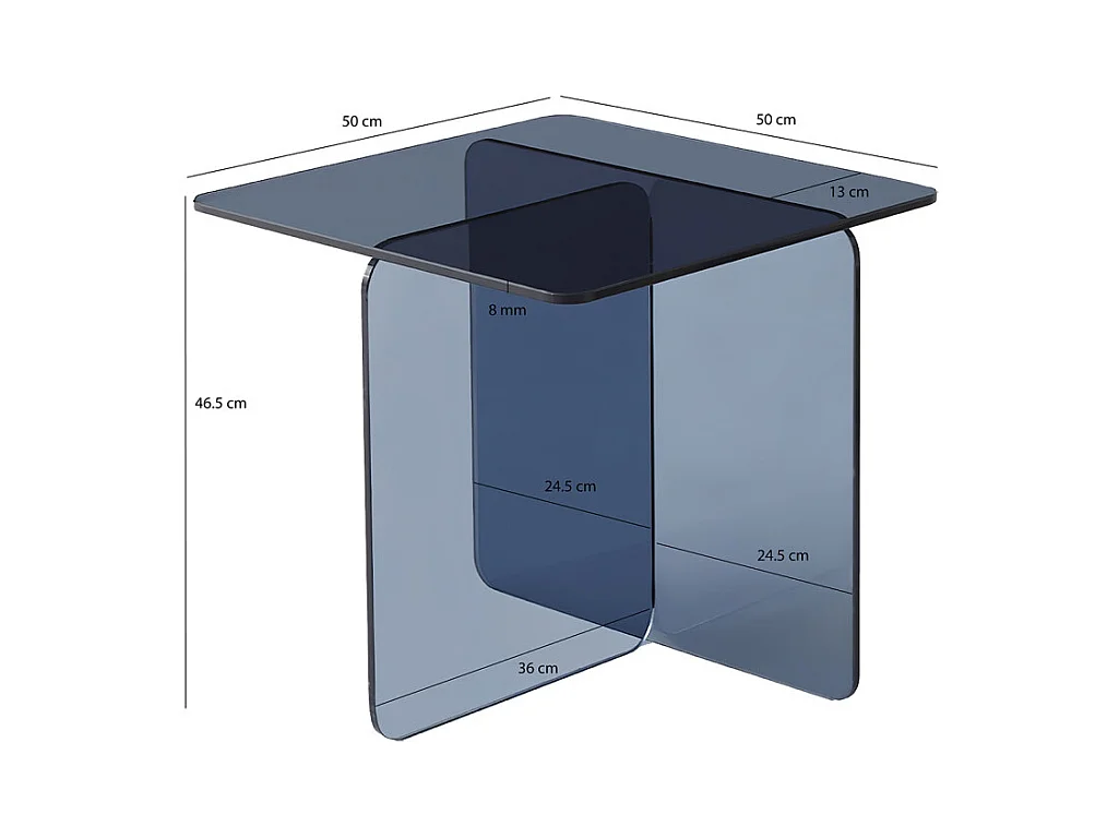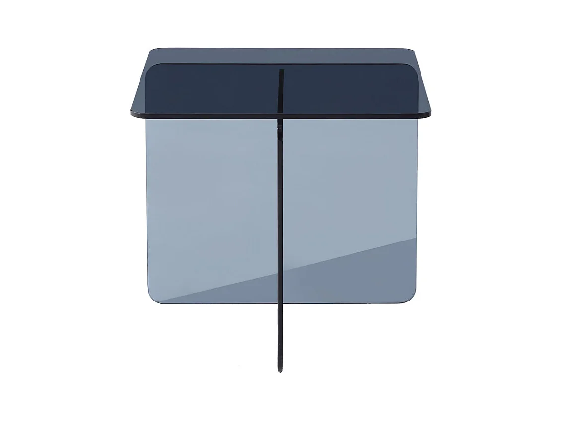 Table d'appoint carrée design moderne verre trempé bleu foncé - ICE
