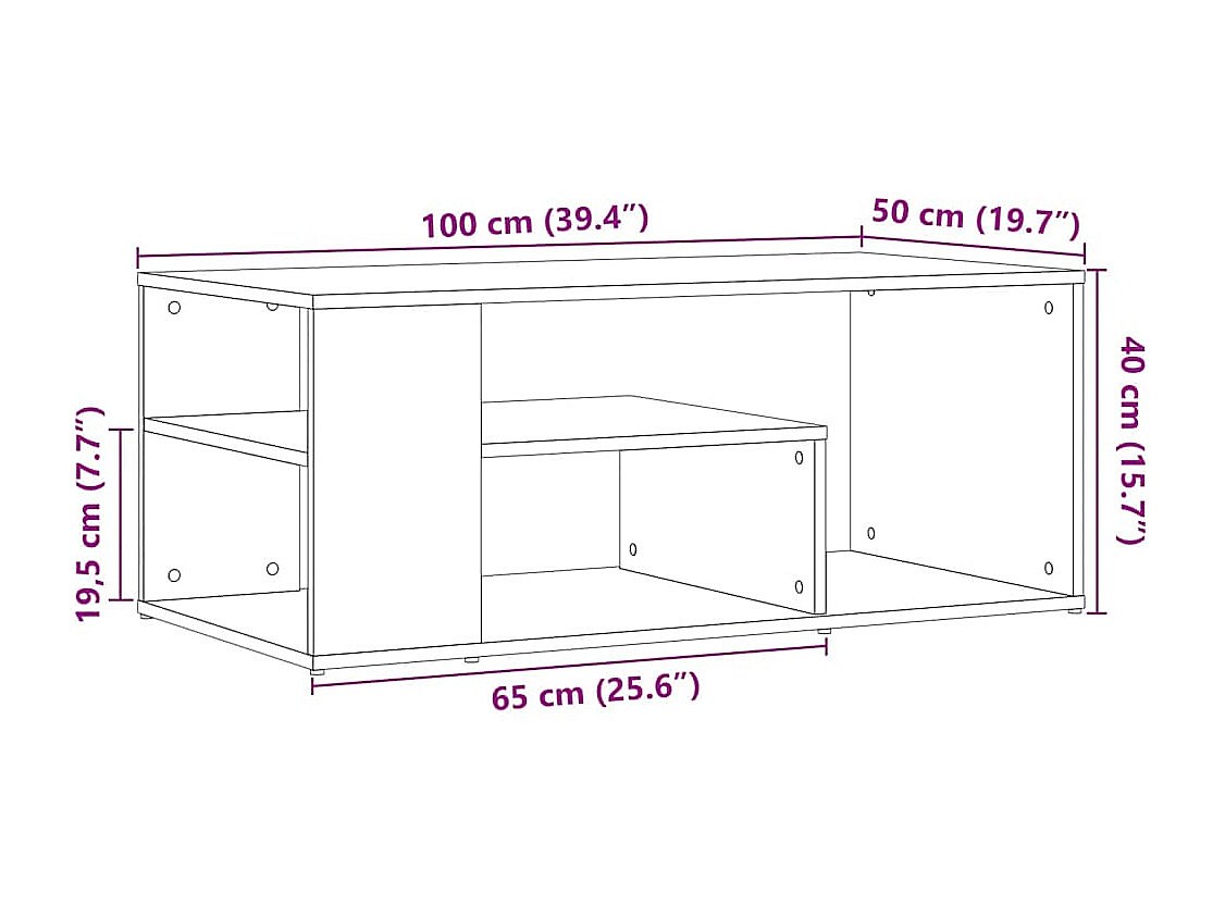 Table d'appoint chêne artisanal 100x50x40 cm bois d'ingénierie