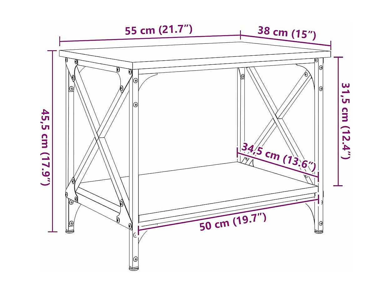 Table d'appoint en chêne noir 70 x 35 x 60 cm Bois d'ingénierie