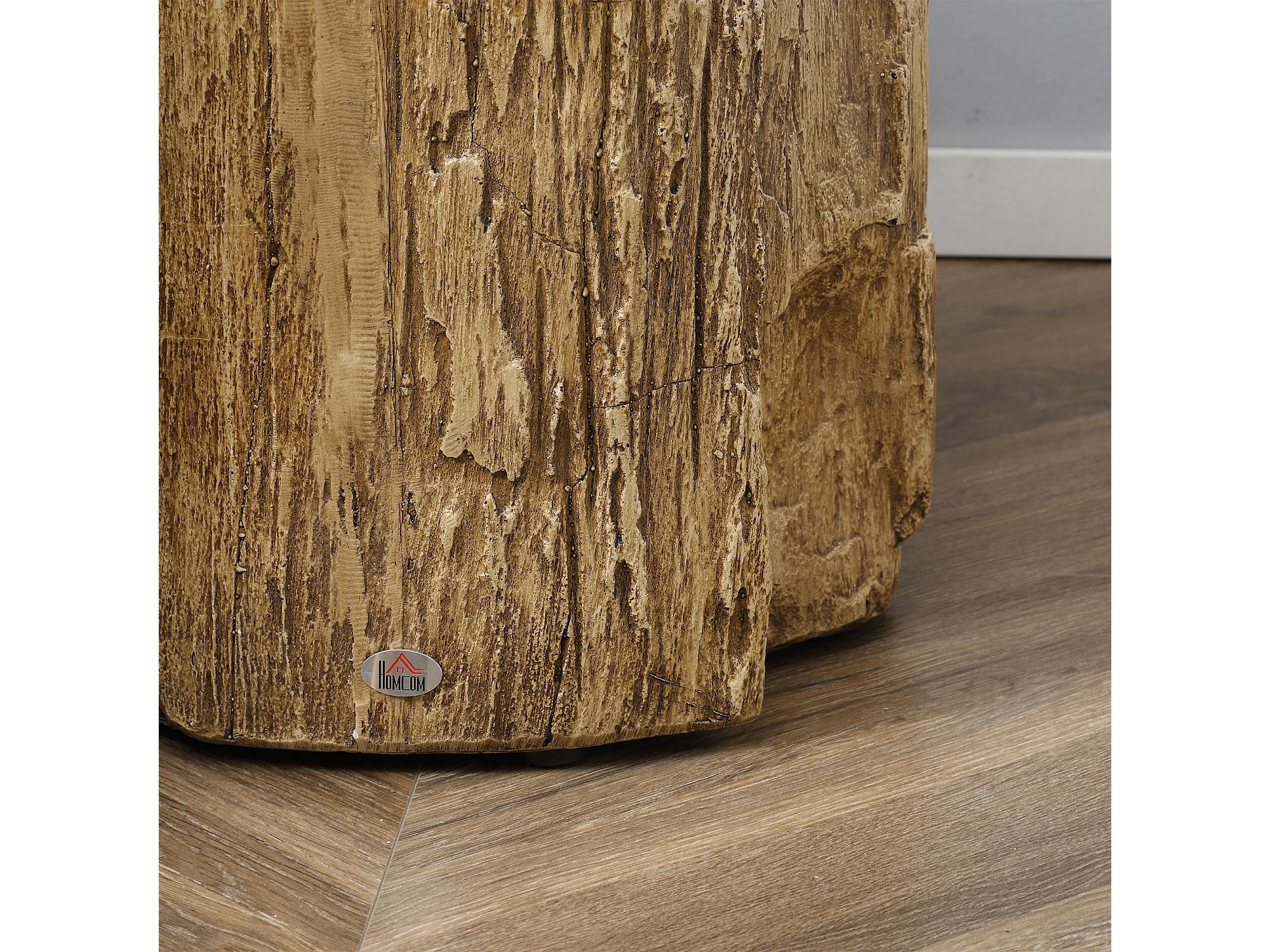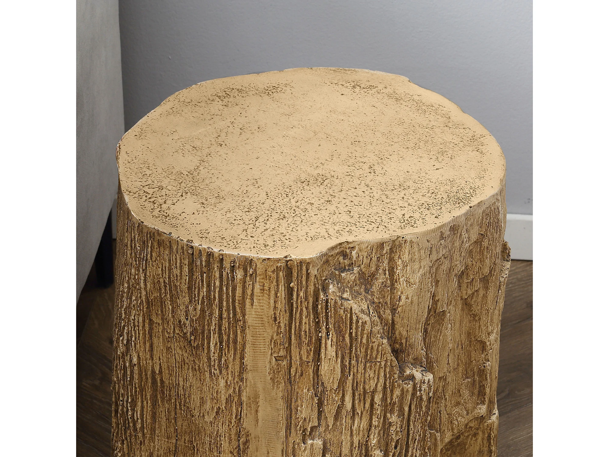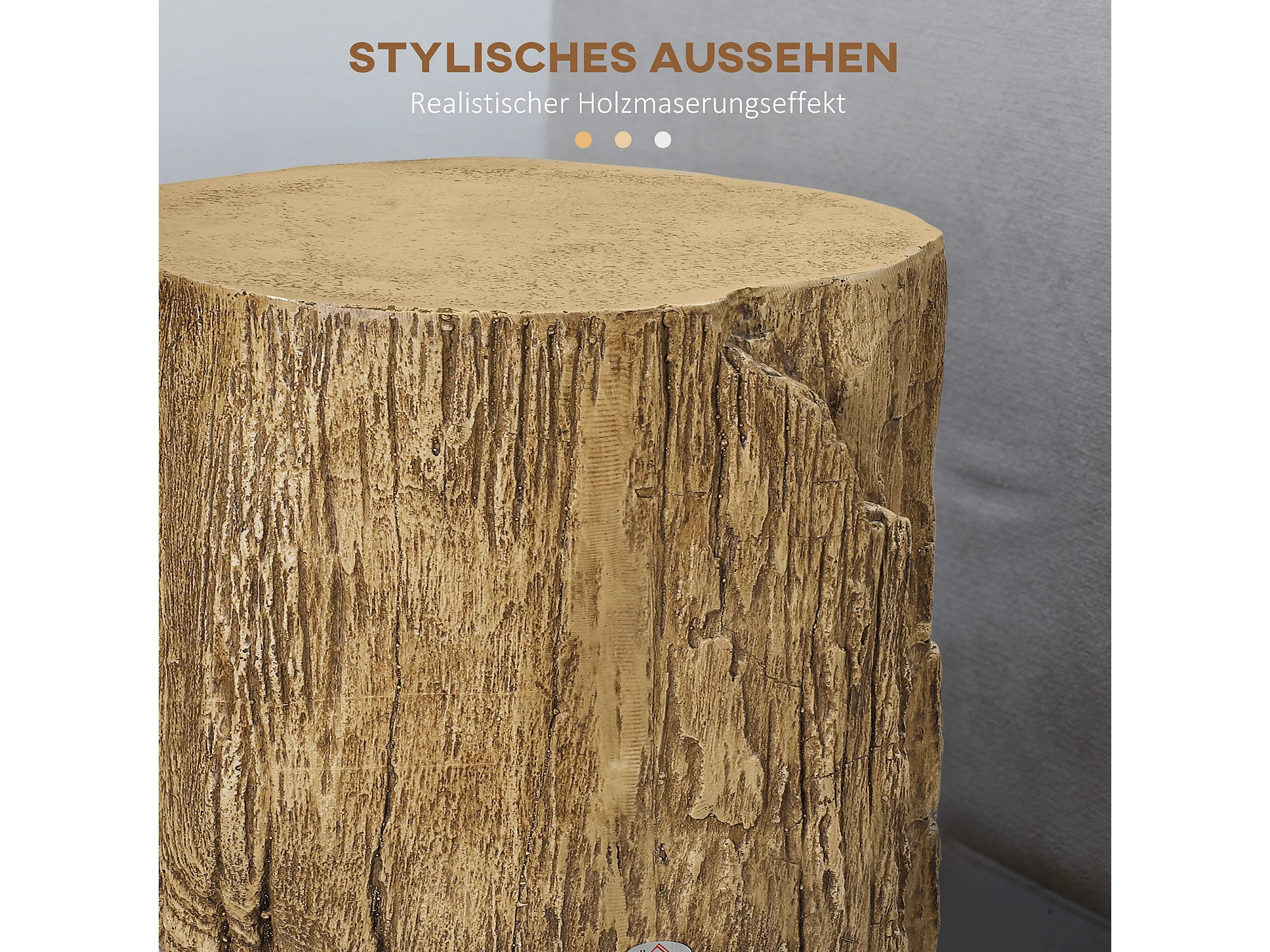 Table d'Appoint, Design en Tronc d'Arbre, Structure en Béton, Résistante à l'Eau, Naturelle (37x37x43 cm)