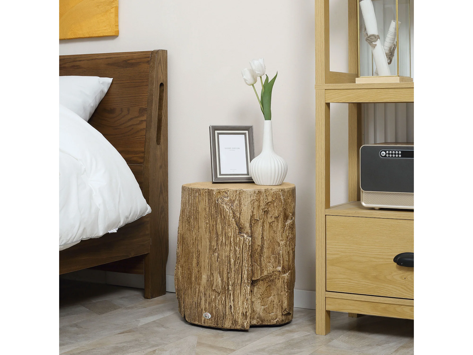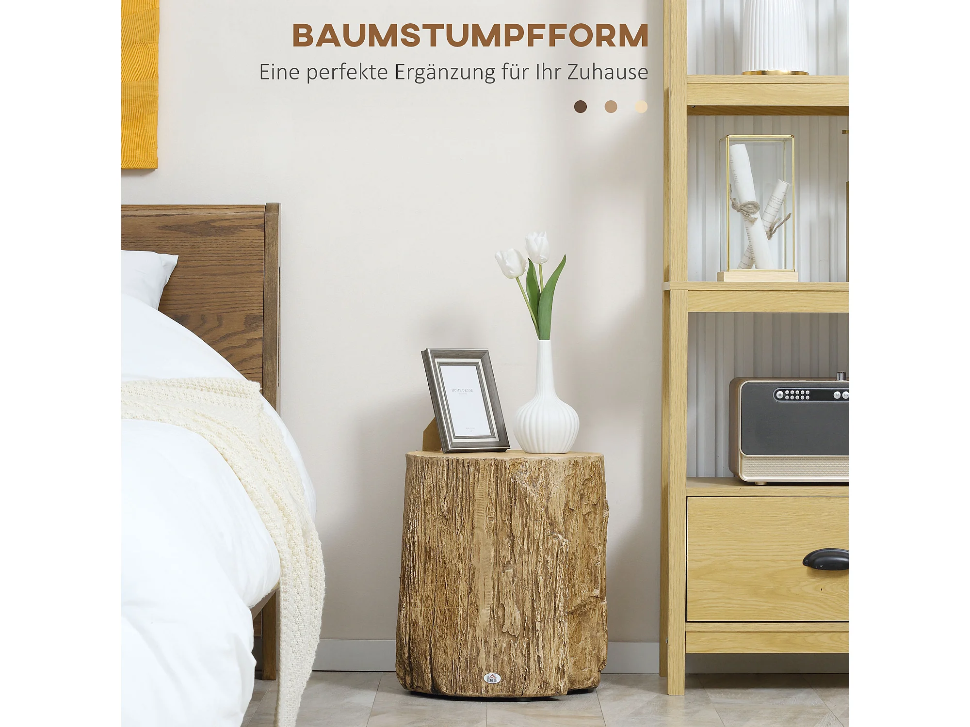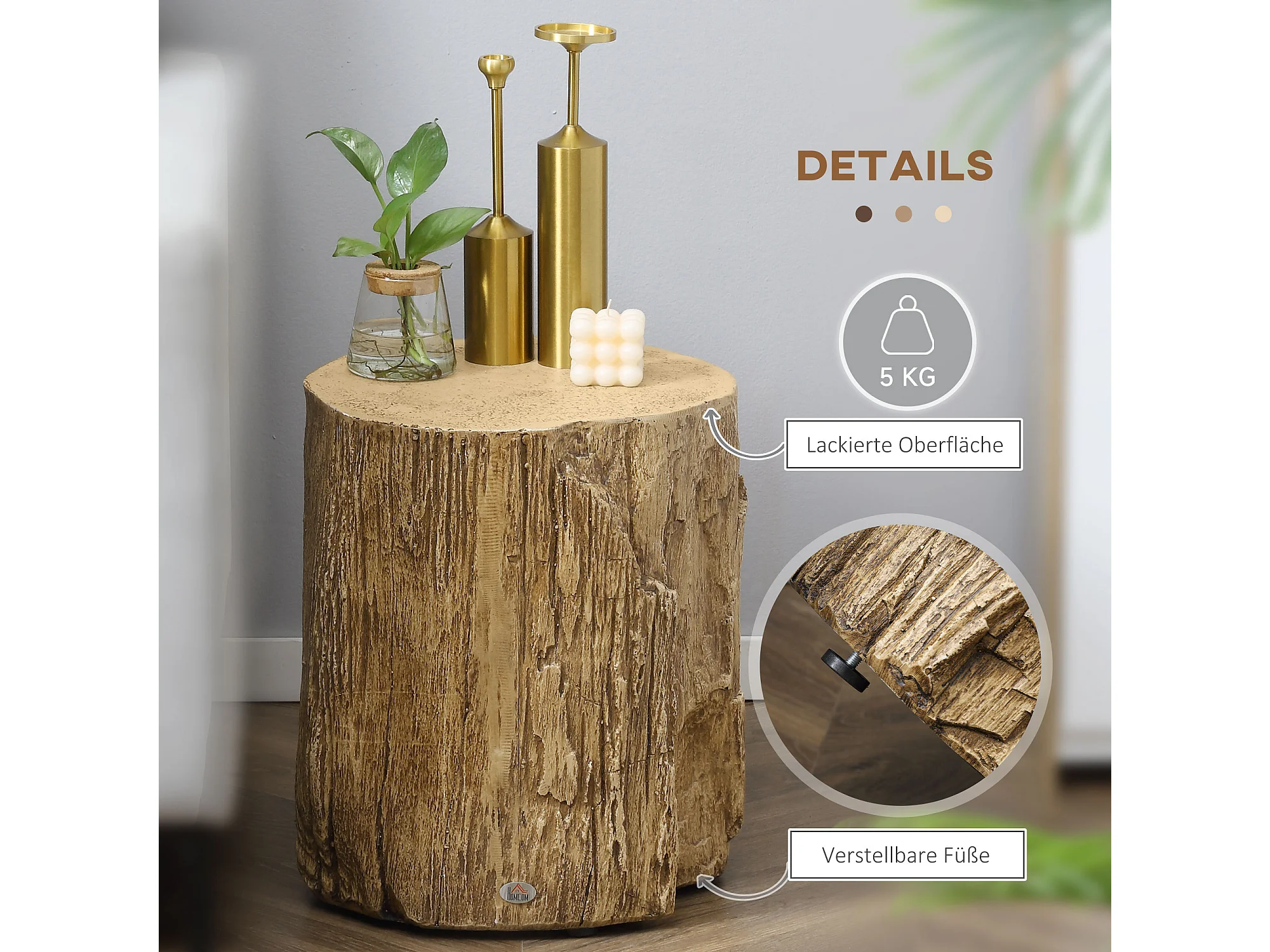Table d'Appoint, Design en Tronc d'Arbre, Structure en Béton, Résistante à l'Eau, Naturelle (37x37x43 cm)