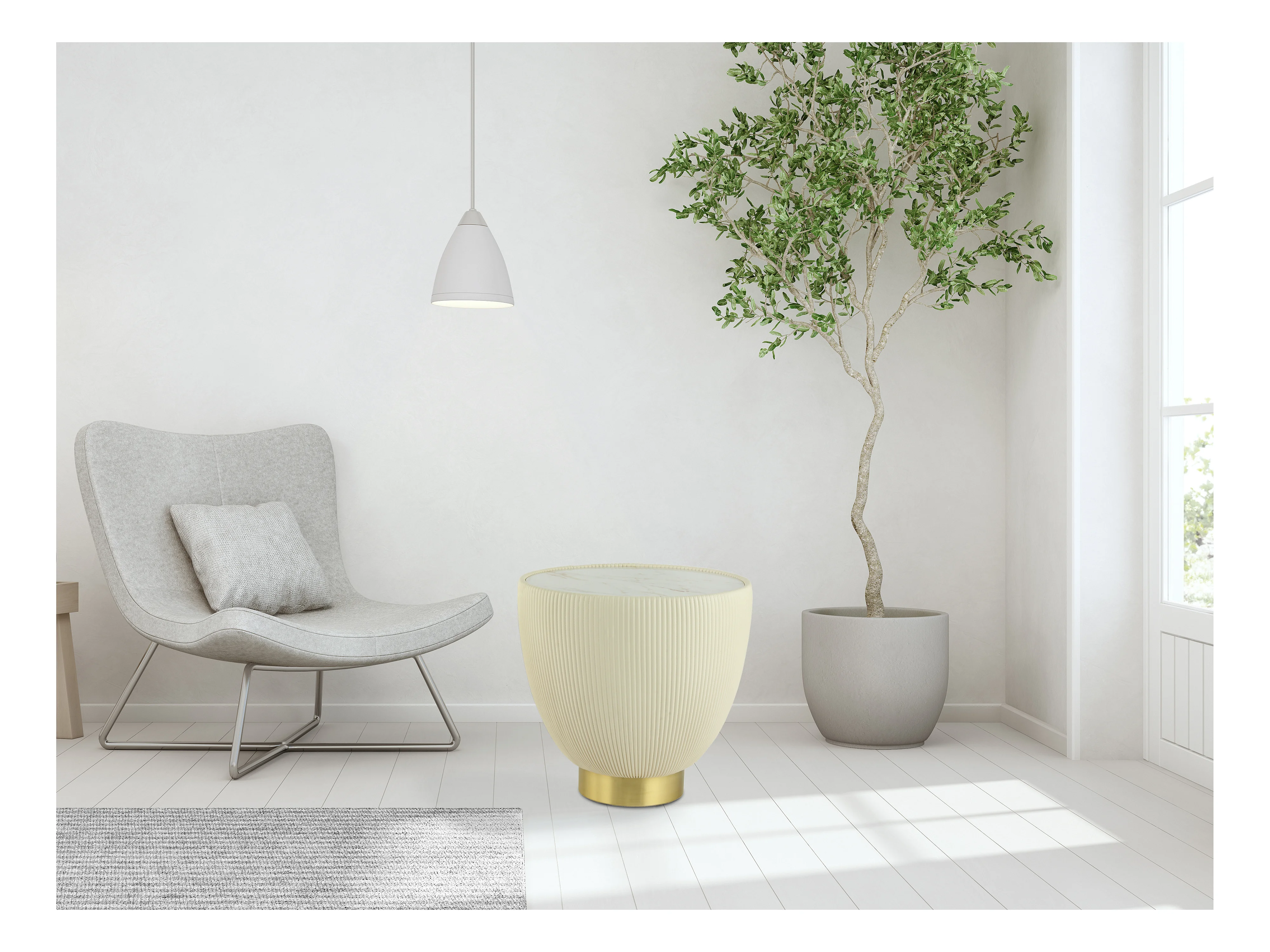 Table d'Appoint Design "Jokai" 47cm Crème & Or