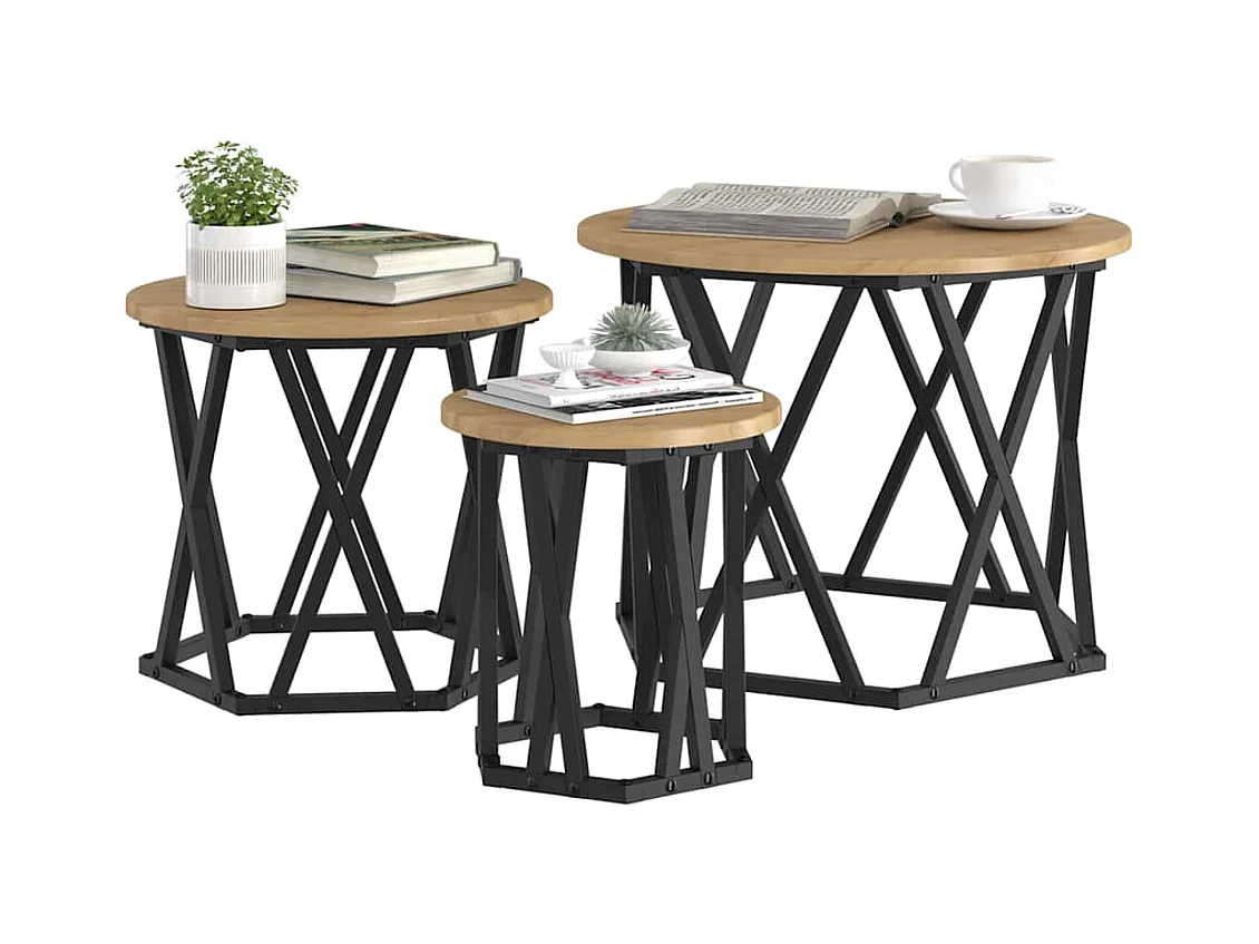 Table d'appoint empilable 3 pièces chêne artisanal 53 x 53 x 40 cm
