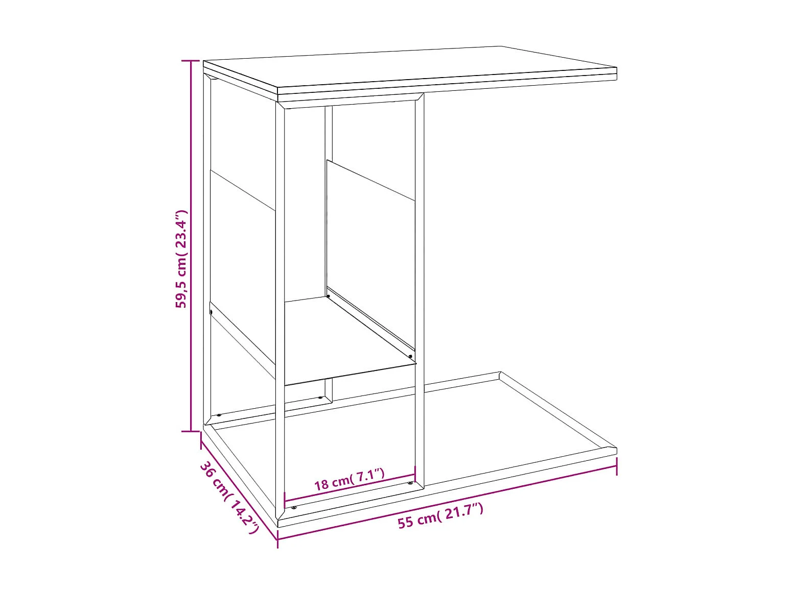 Table d'appoint en forme bois blanche 55 x 36 x 63.5 cm DEC031294