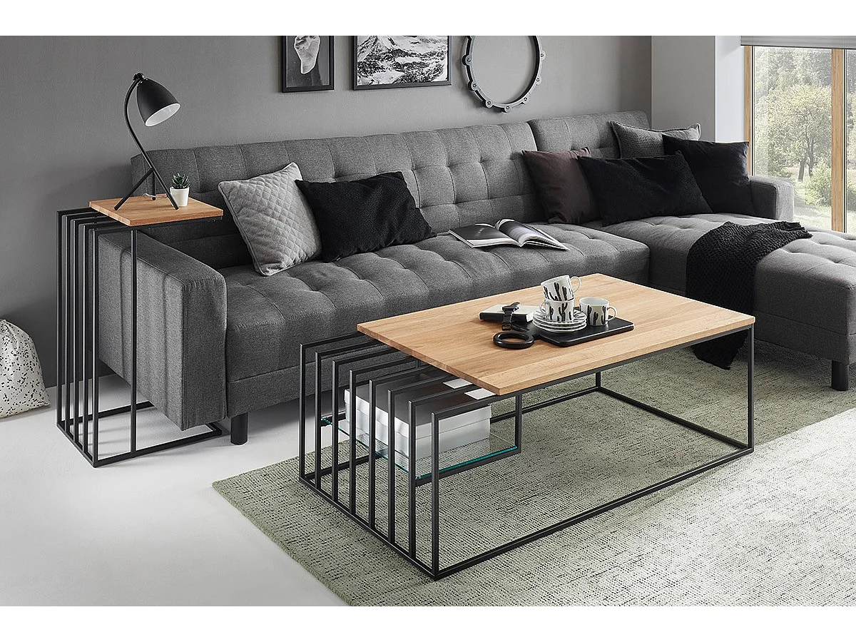 Table d'appoint en métal coloris chêne massif huilé - L.40 x H.70 x P.35 cm