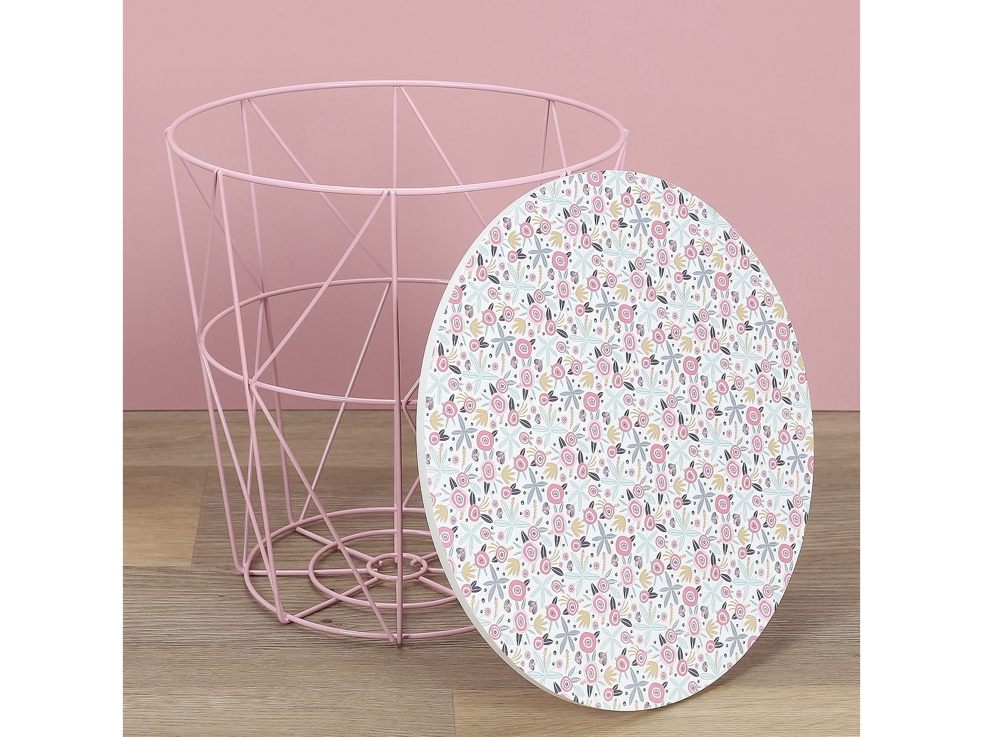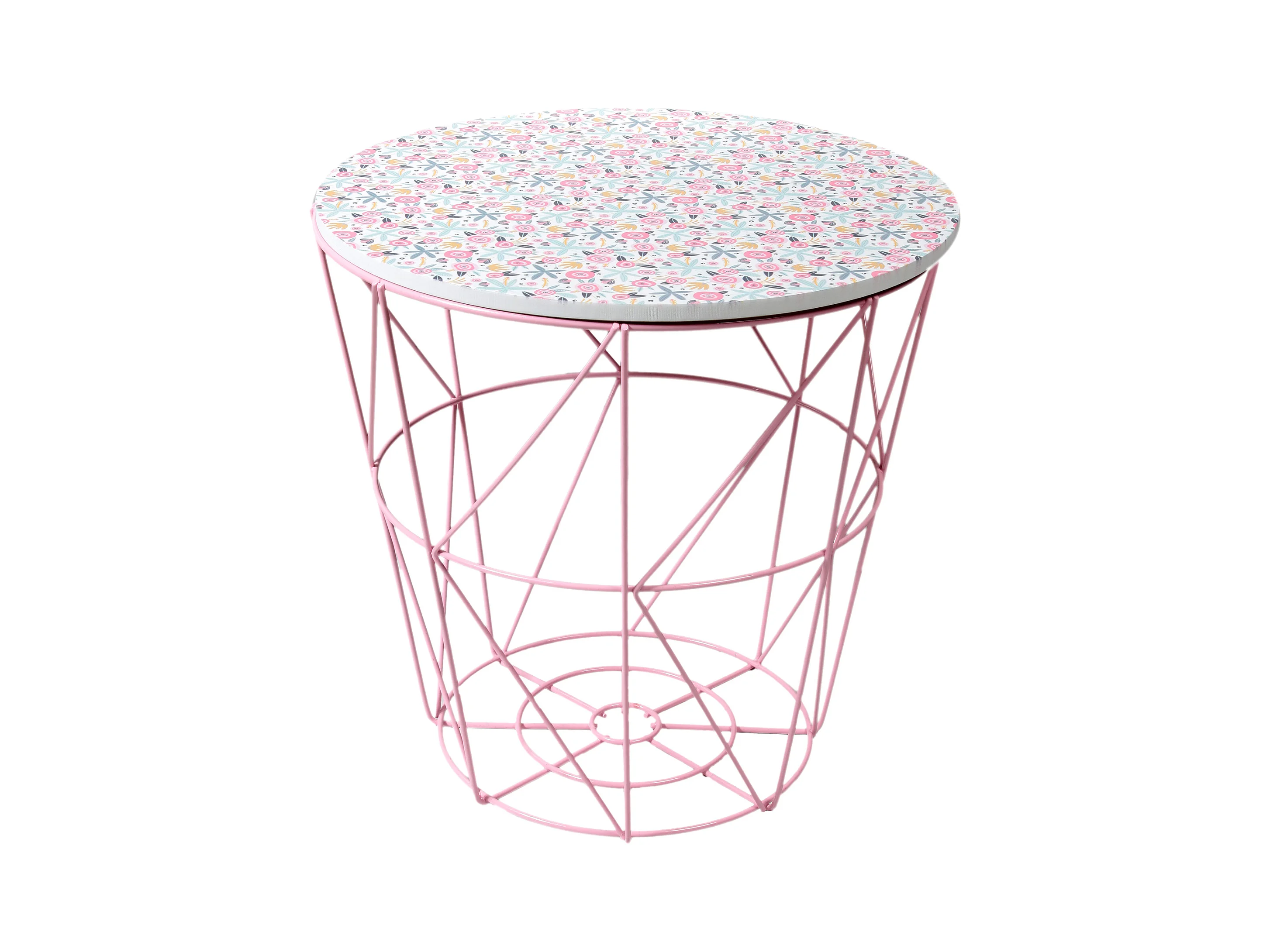 Table d'appoint carrée / porte-revue en métal coloris rose / gris - L.35 x H.40 x P.35 cm