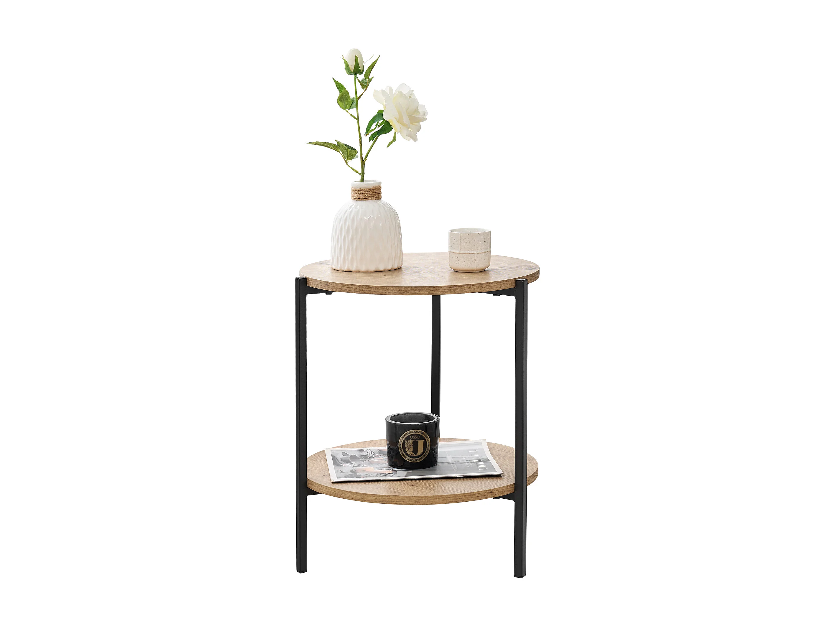 Table d'appoint Kuopio ronde 50 x 40 cm noir et effet bois [en.casa]