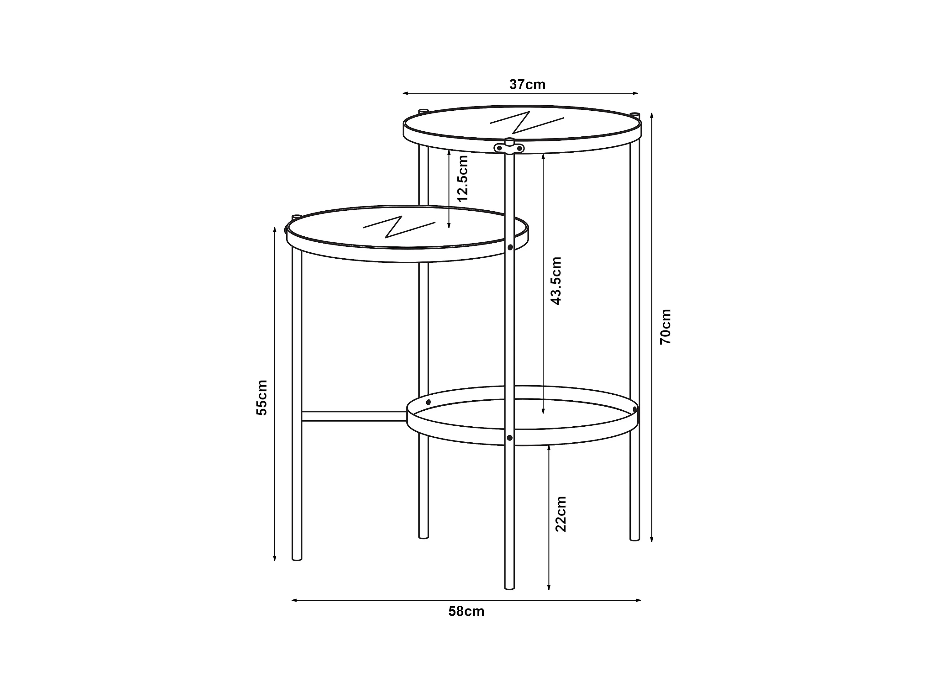 Table d'appoint Mölndal avec 3 plateaux métal 70 x 58 x 37 cm noir [en.casa]