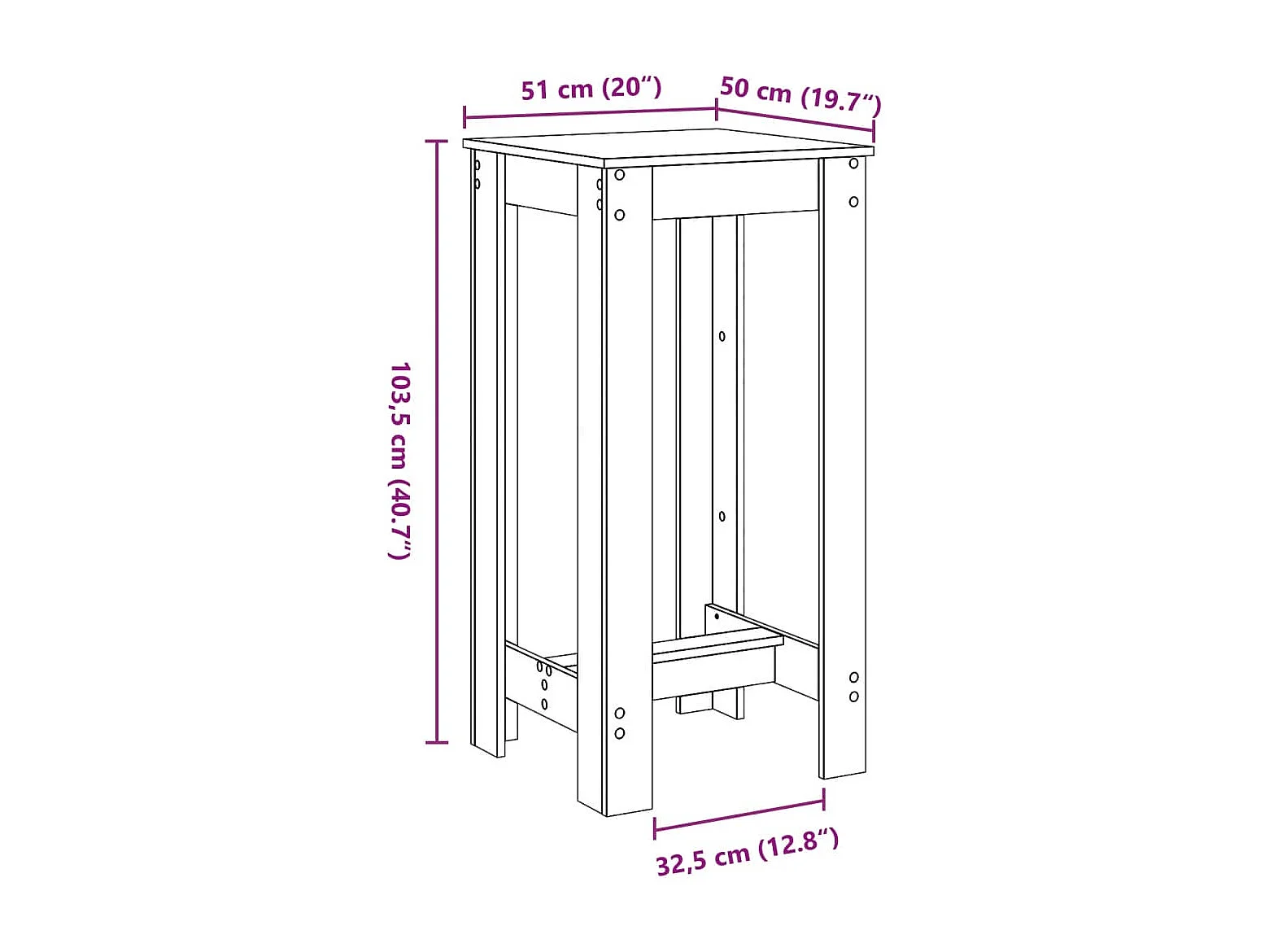 Table d’appoint multifonction table bois blanche 51 x 50 x 103.5 cm DEC036413