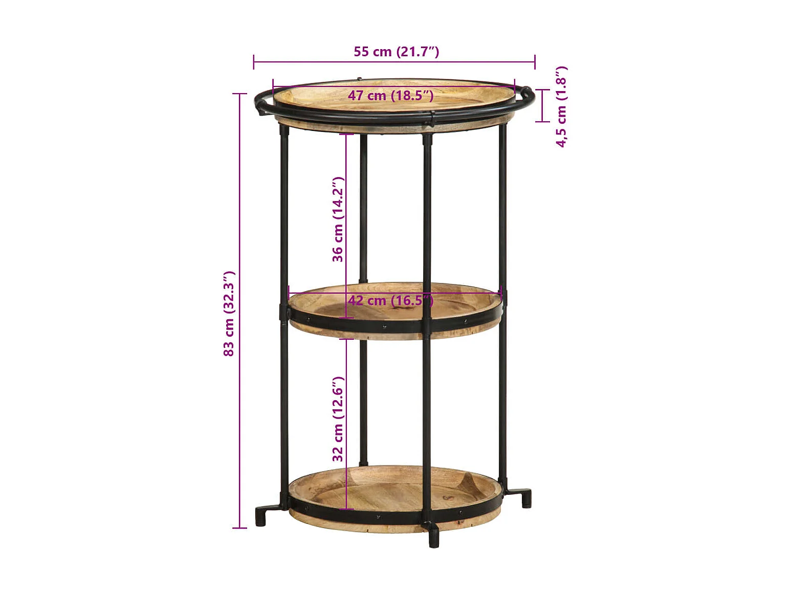 Table d'appoint Ø55x83 cm bois de manguier massif