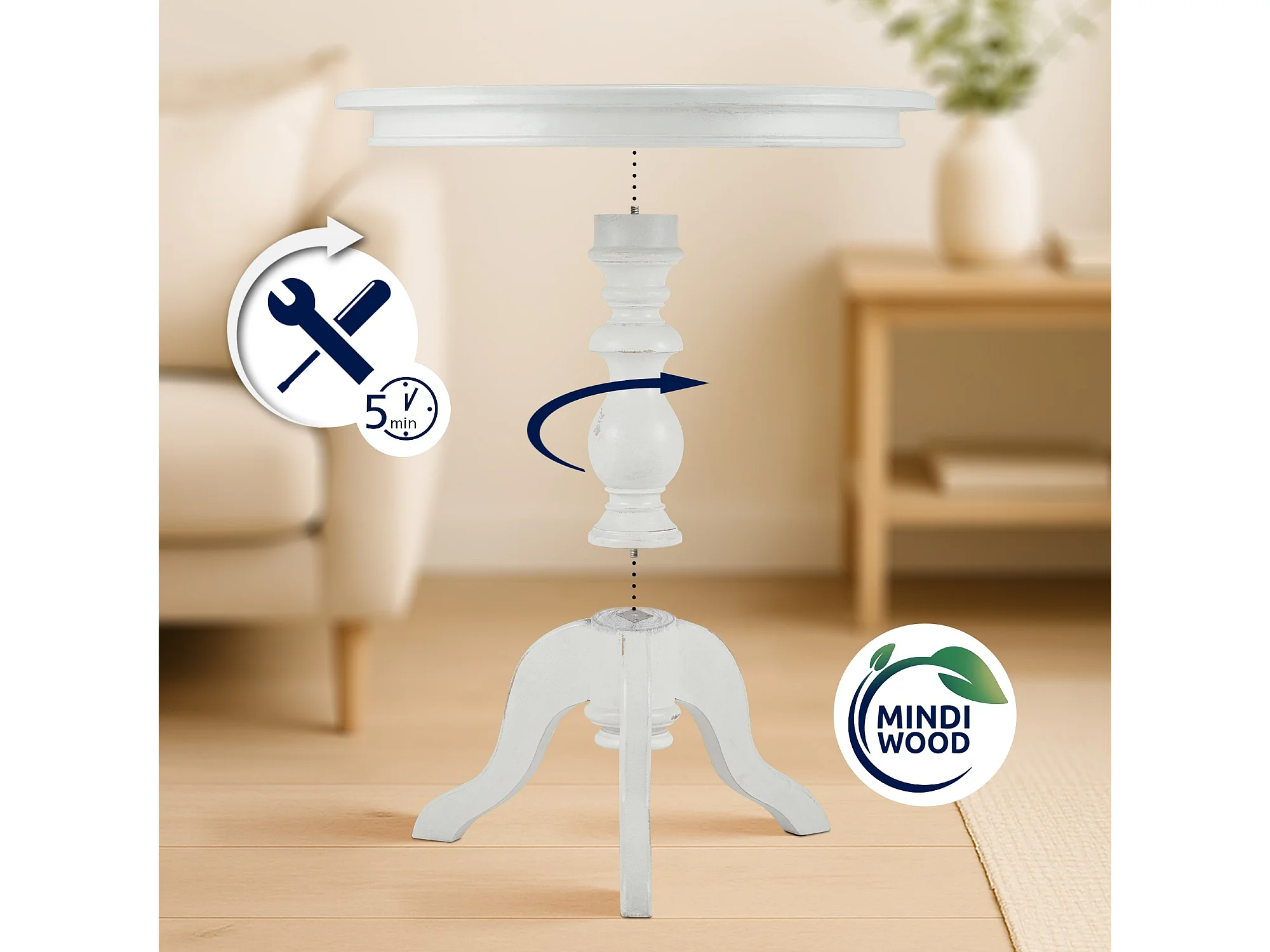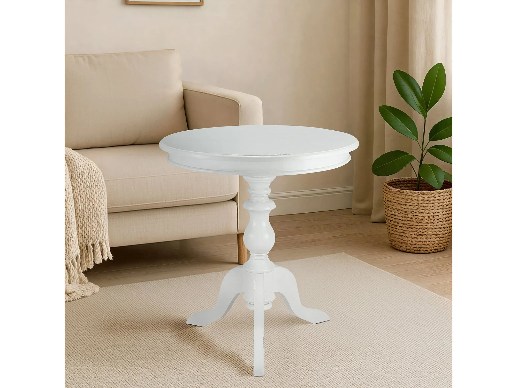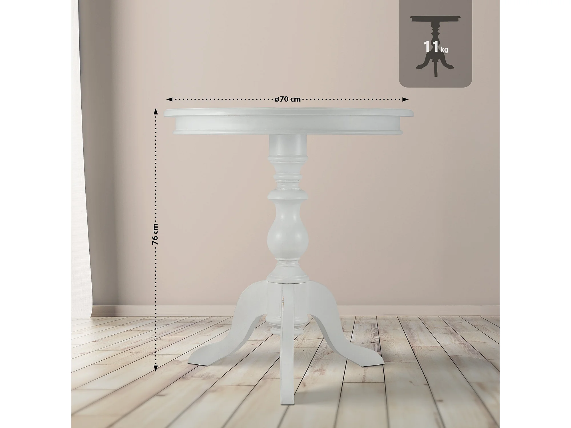 Table d'appoint - rond Ø 70 cm - Bois - Blanc antique - Wiva