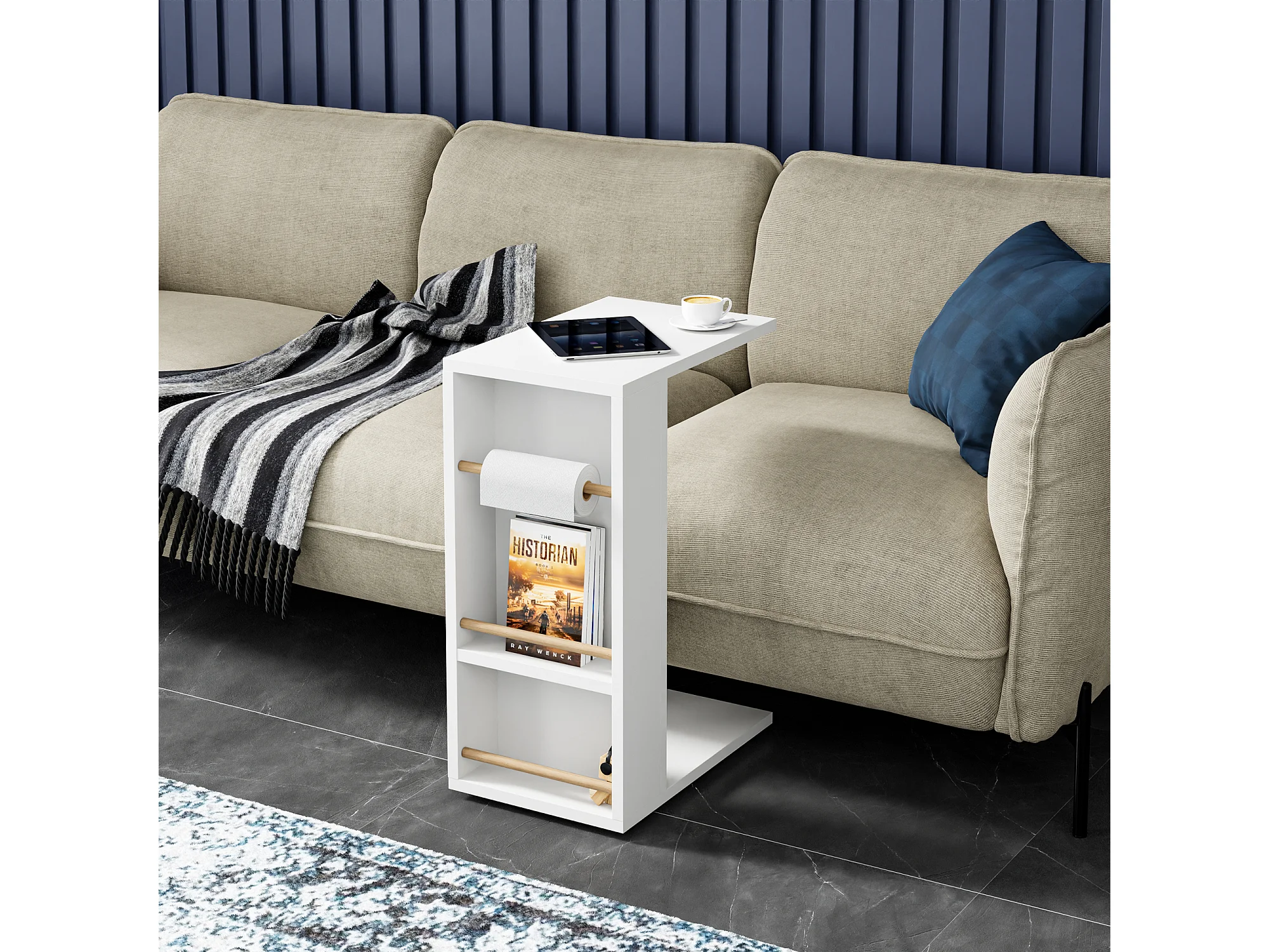 Table d'appoint Siikainen panneau de particules bois plastique 44 x 29 x 65 cm blanc [en.casa]