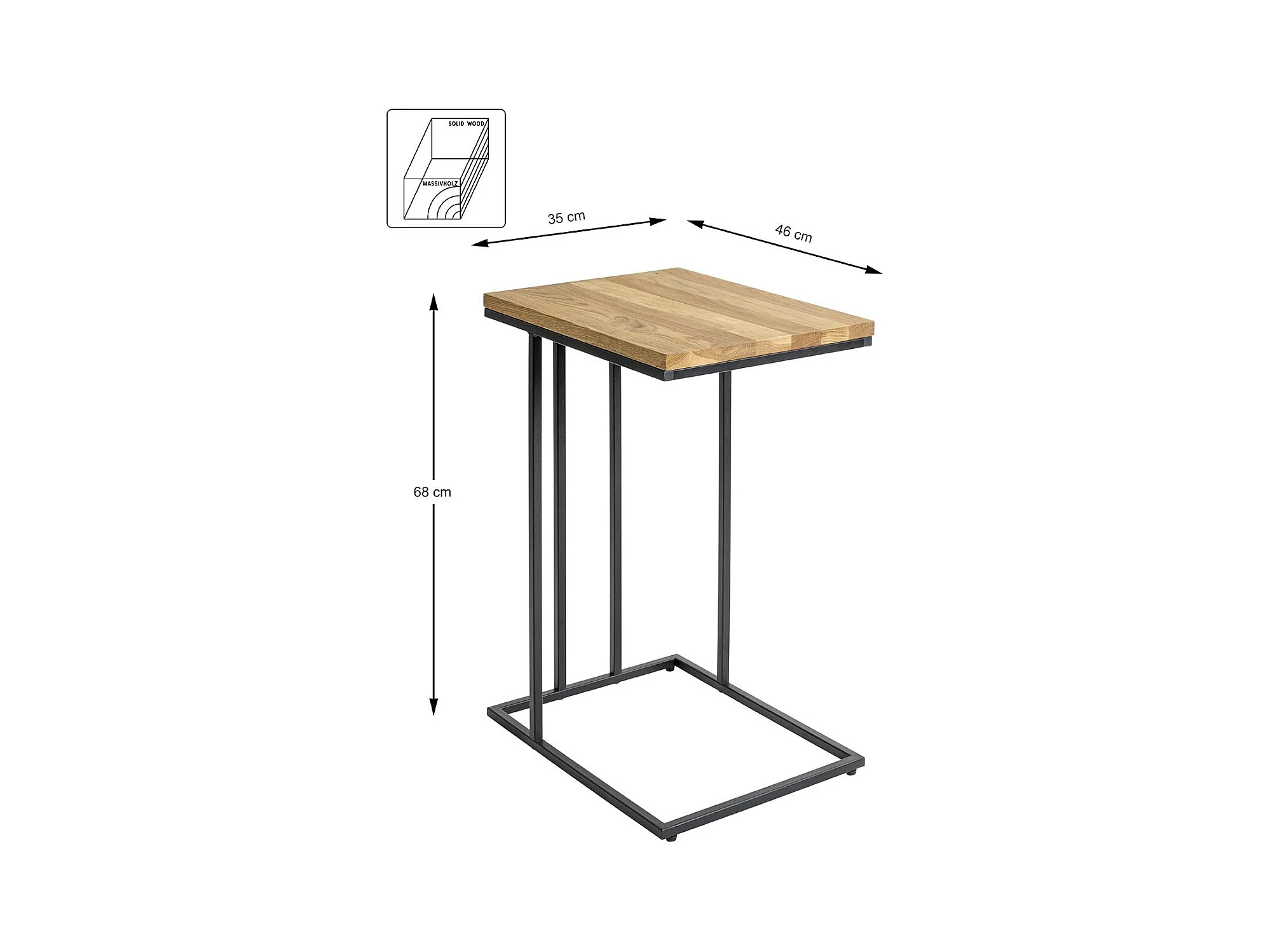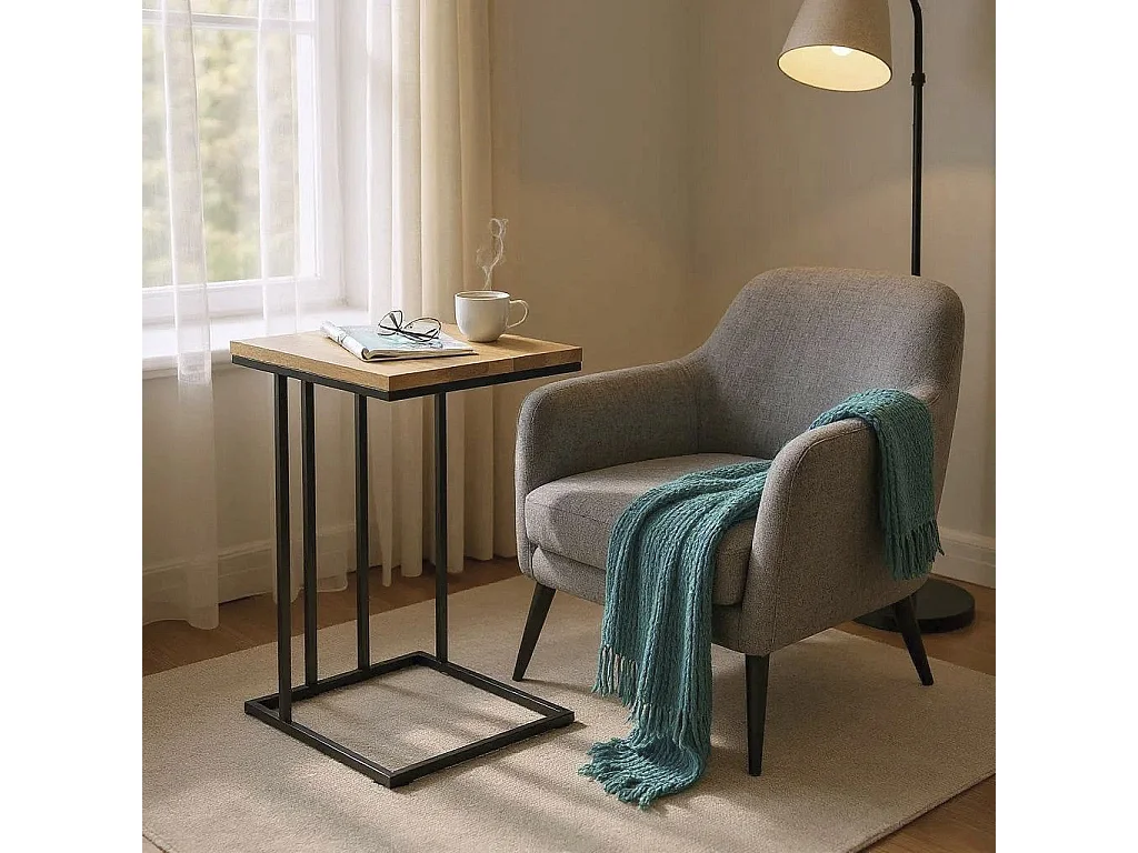 Table d'appoint Table à café bout de canapé coloris chêne/noir - Longueur 35 x Hauteur 68 x Profondeur 46cm