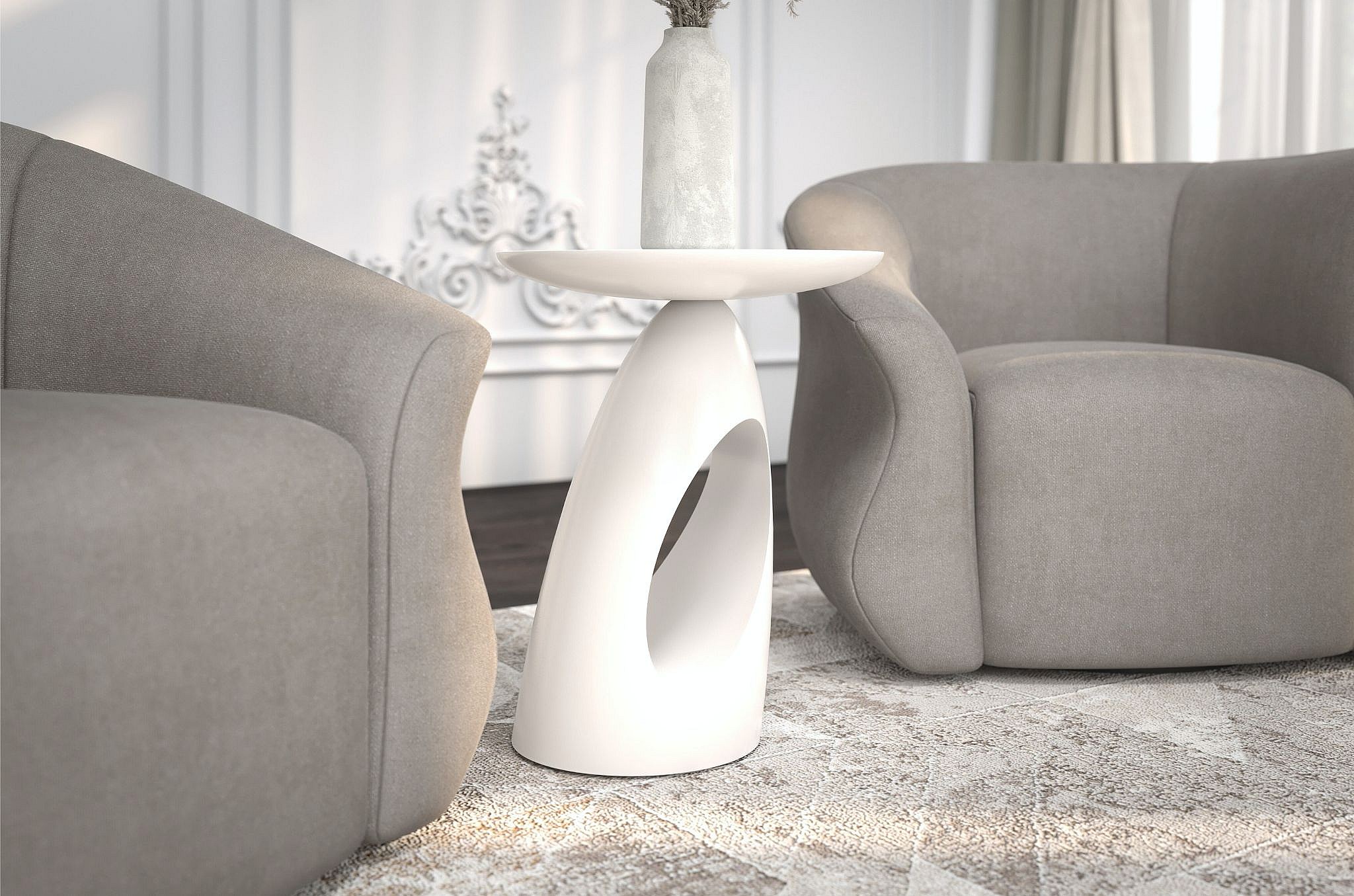 Table d'appoint / Table de nuit en bois de hêtre Kayani Island, hauteur 40 cm / Blanche RAL