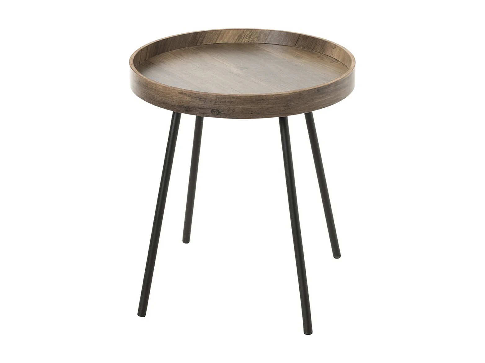 Table d'appoint, Table de salon en bois coloris chêne et métal noir - diamètre 40 x hauteur 45 cm