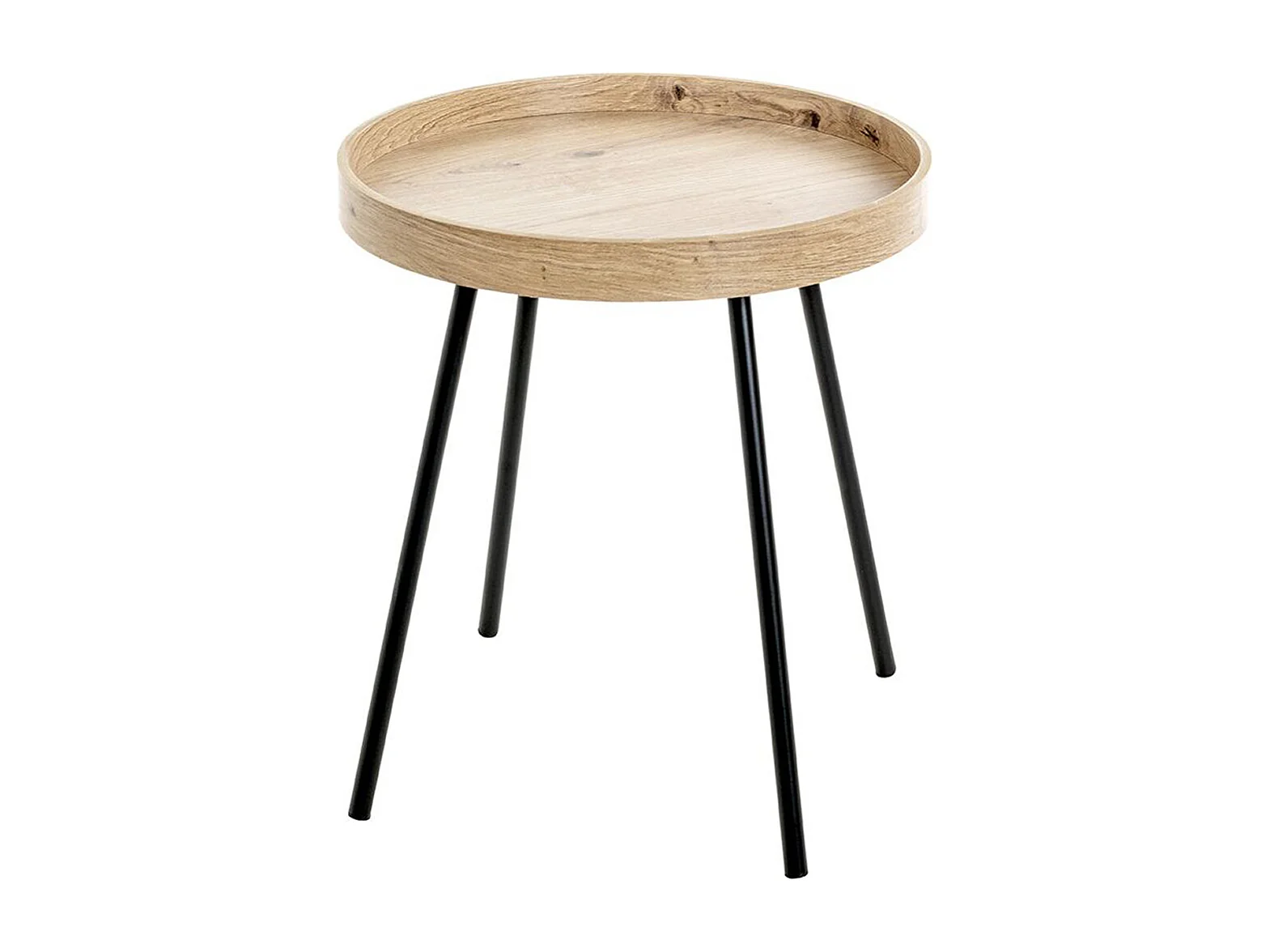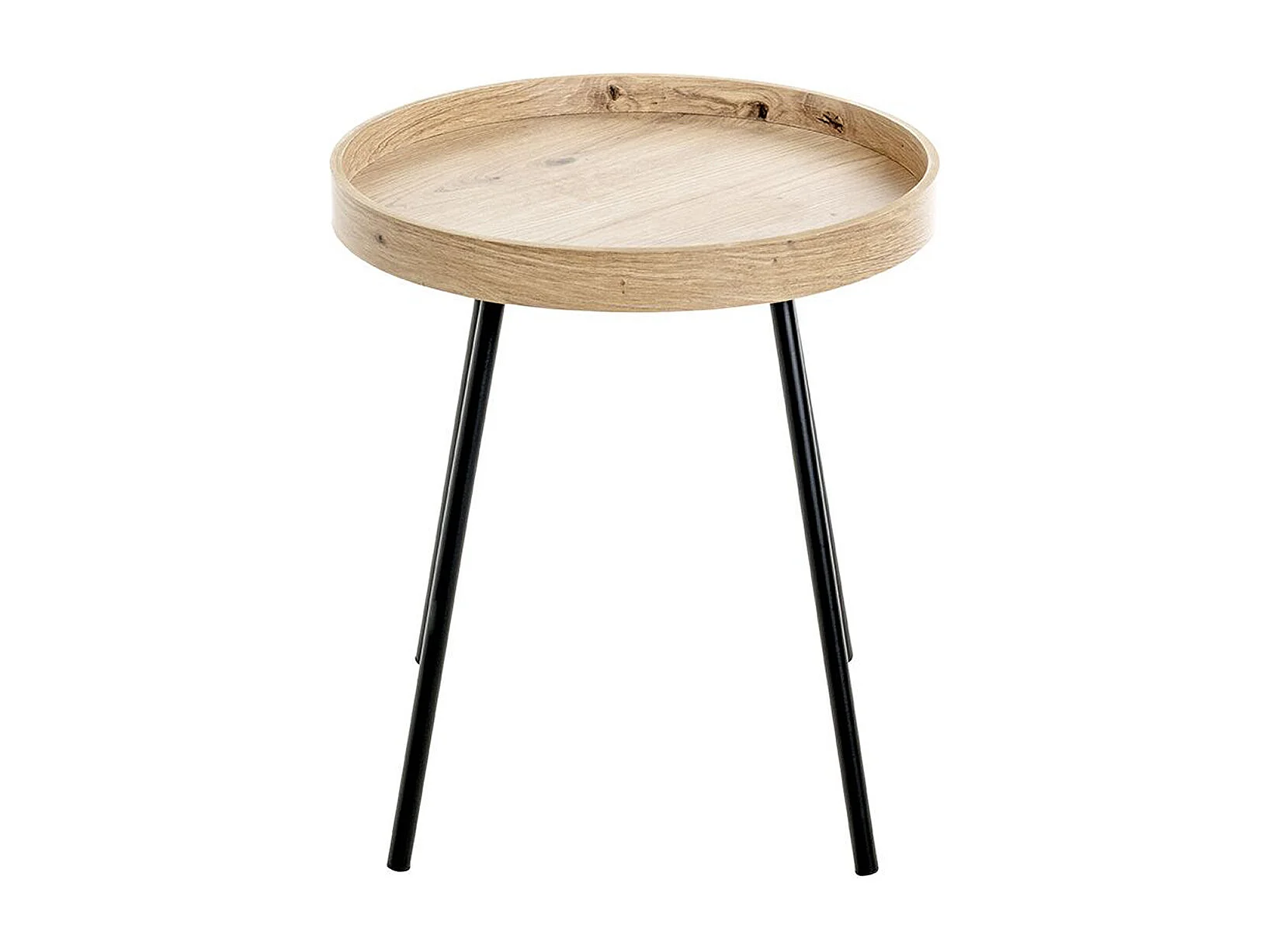 Table d'appoint, table de salon en bois coloris chêne et métal noir - diamètre 50 x hauteur 52 cm
