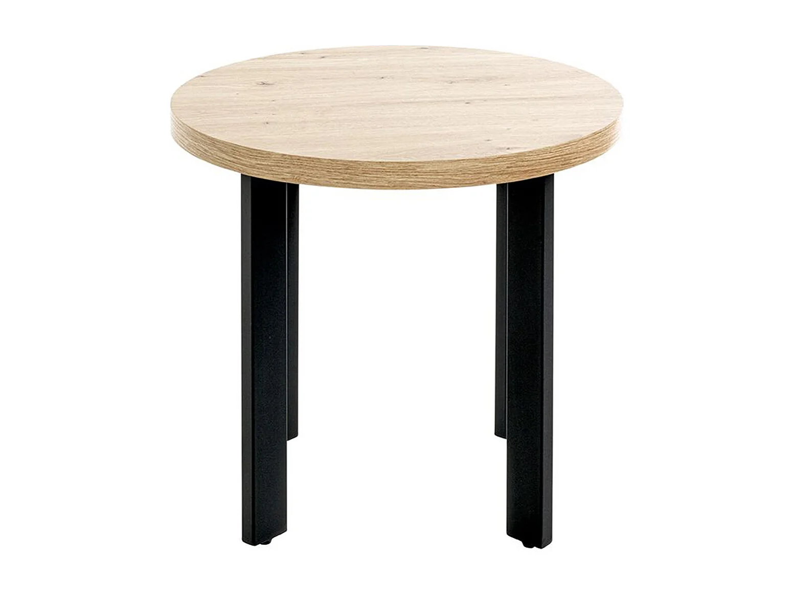 Table d'appoint, Table de salon en bois coloris chêne et métal noir - diamètre 50 x hauteur 46 cm