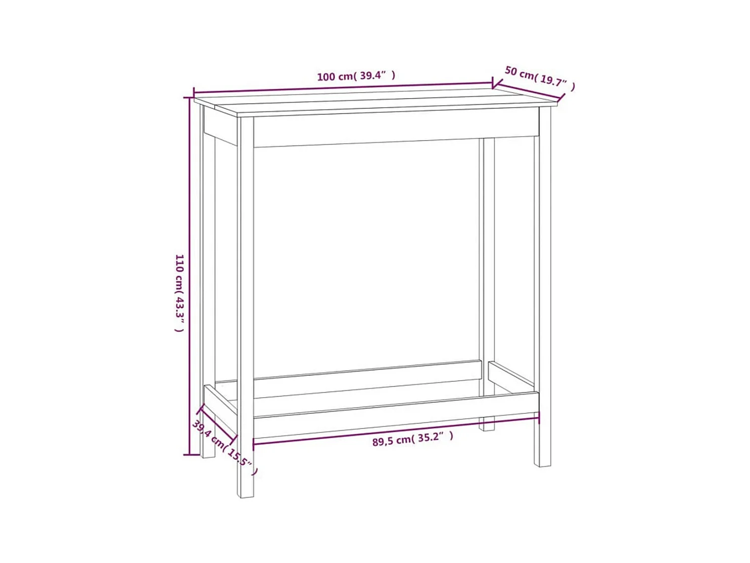 Table de bar blanc 100x50x110 cm bois massif de pin