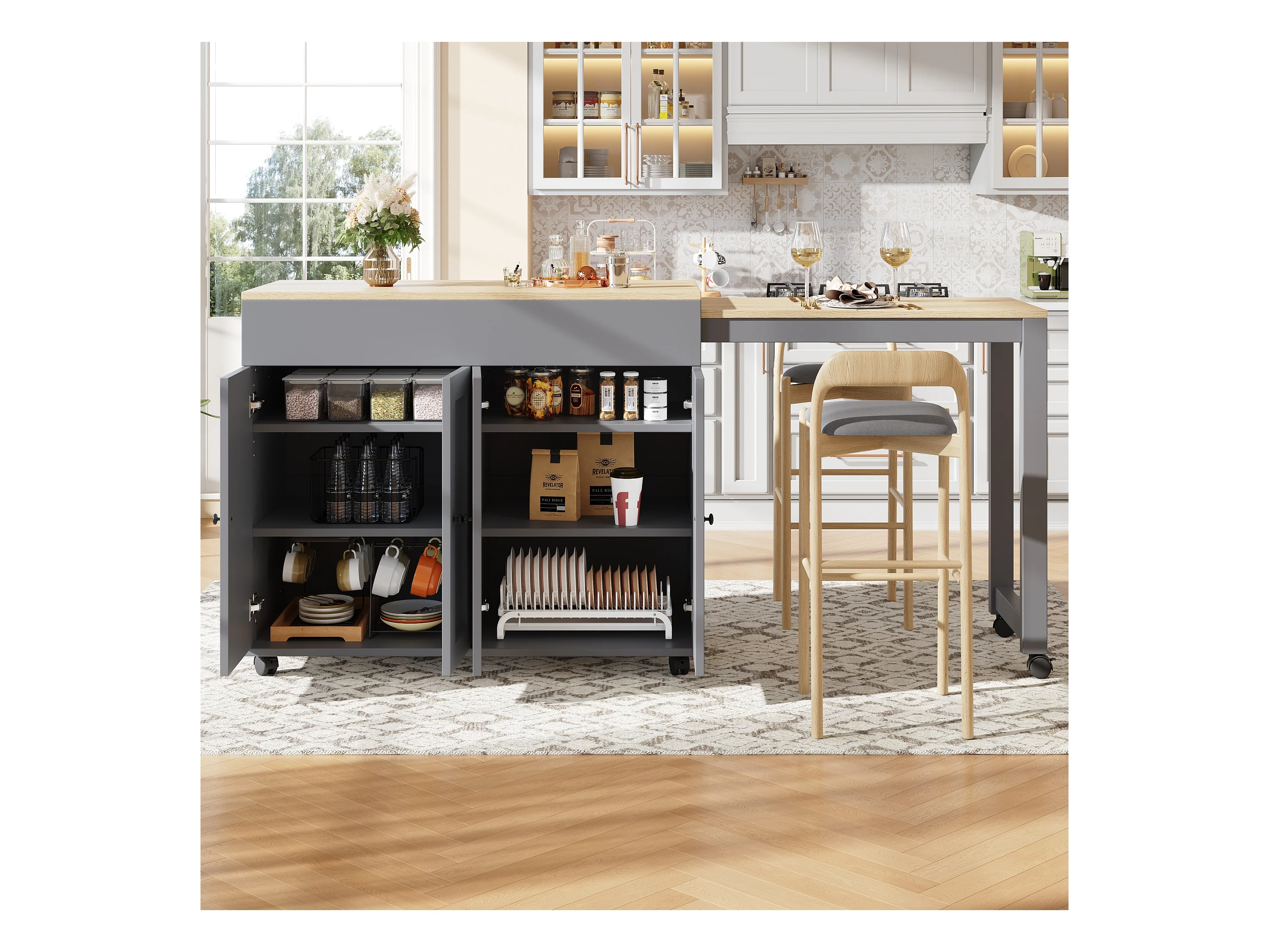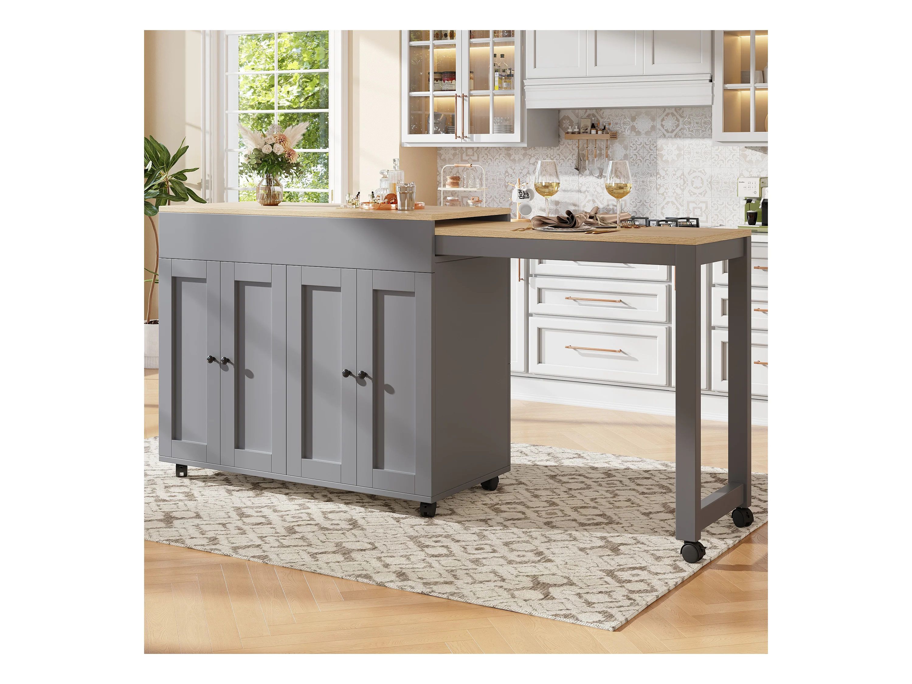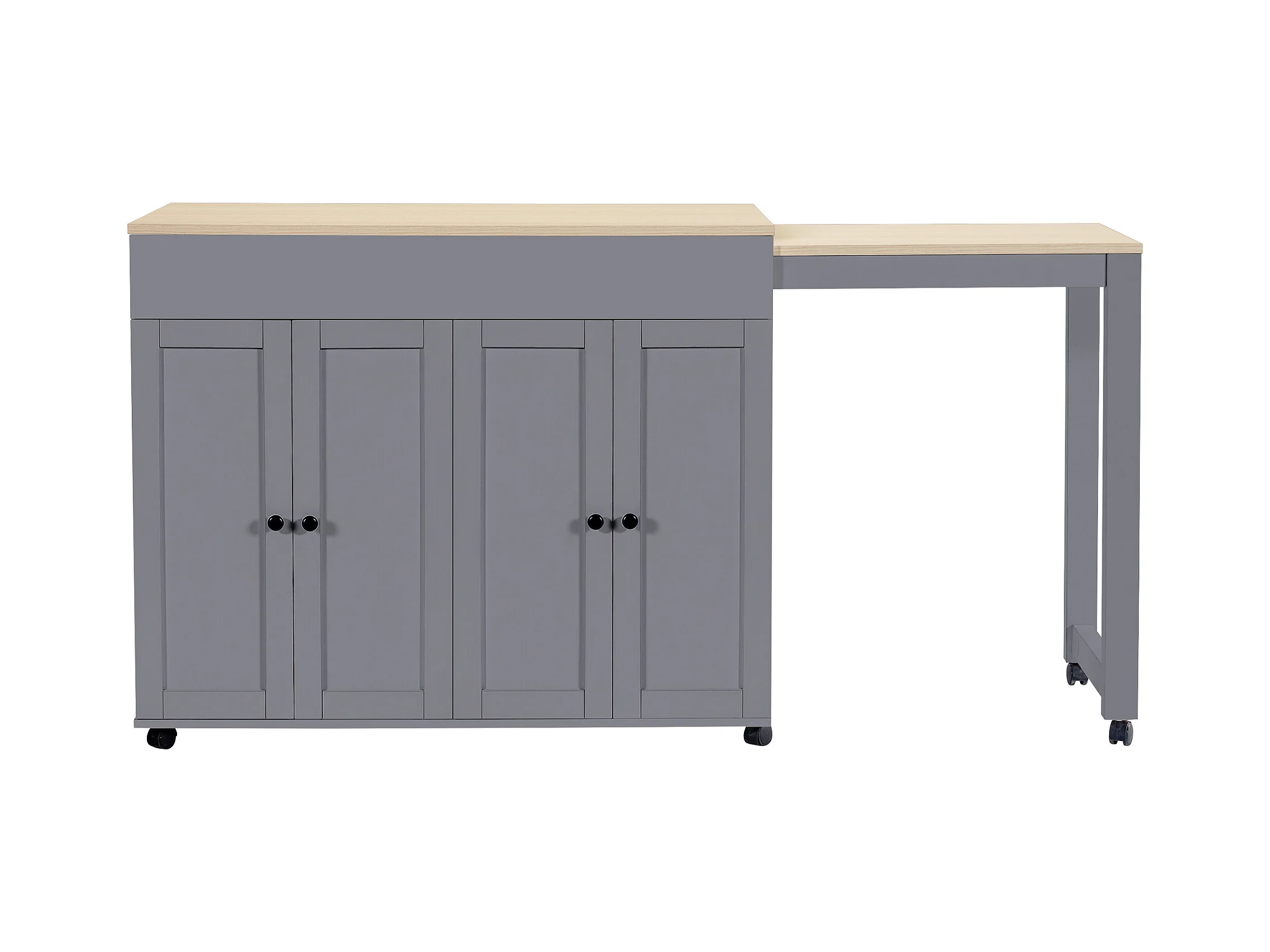 Table de bar extensible avec rangements, MDF et métal, gris (118-180x50x94 cm)