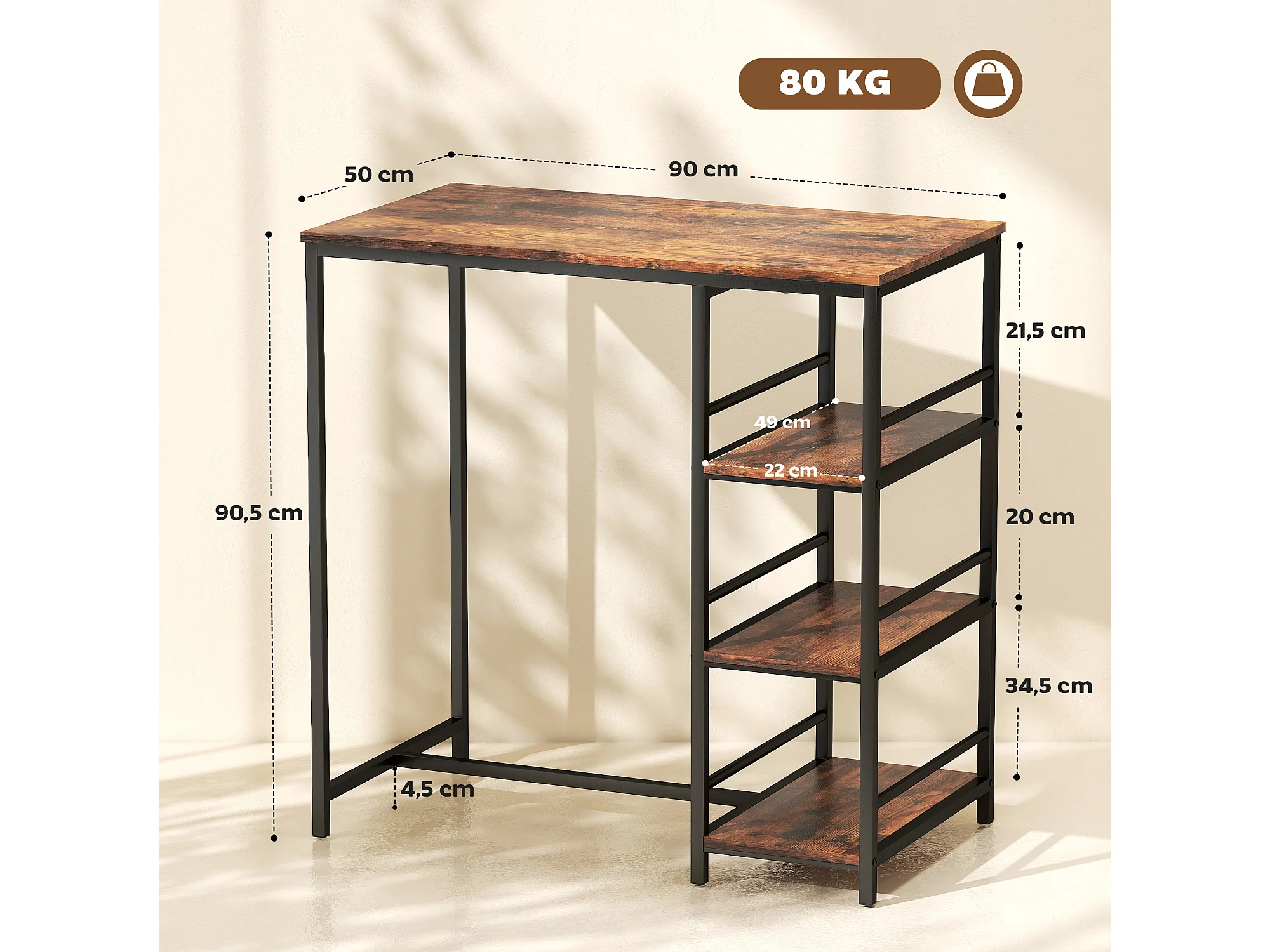 Table de bar mange-debout table haute 3 étagères style industriel dim. 90 x 50 x 90 cm acier noir effet bois vieilli