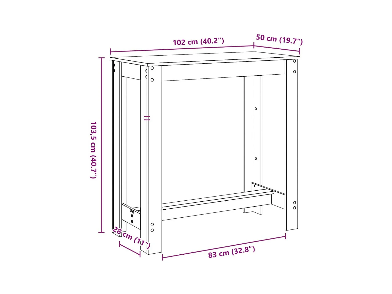 Table de bar noir 102x50x103,5 cm bois d'ingénierie