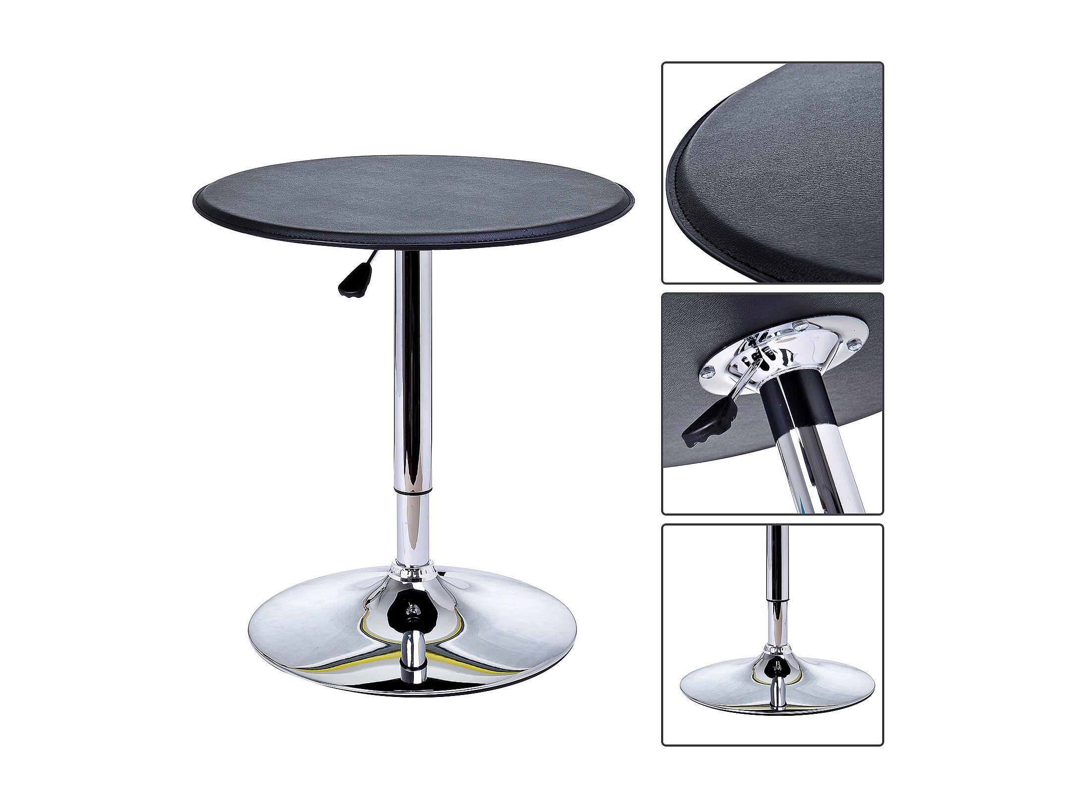 Table de bar table bistro chic style contemporain table ronde hauteur réglable 67-93 cm Ø 63 cm plateau pivotant 360° métal chromé PVC noir