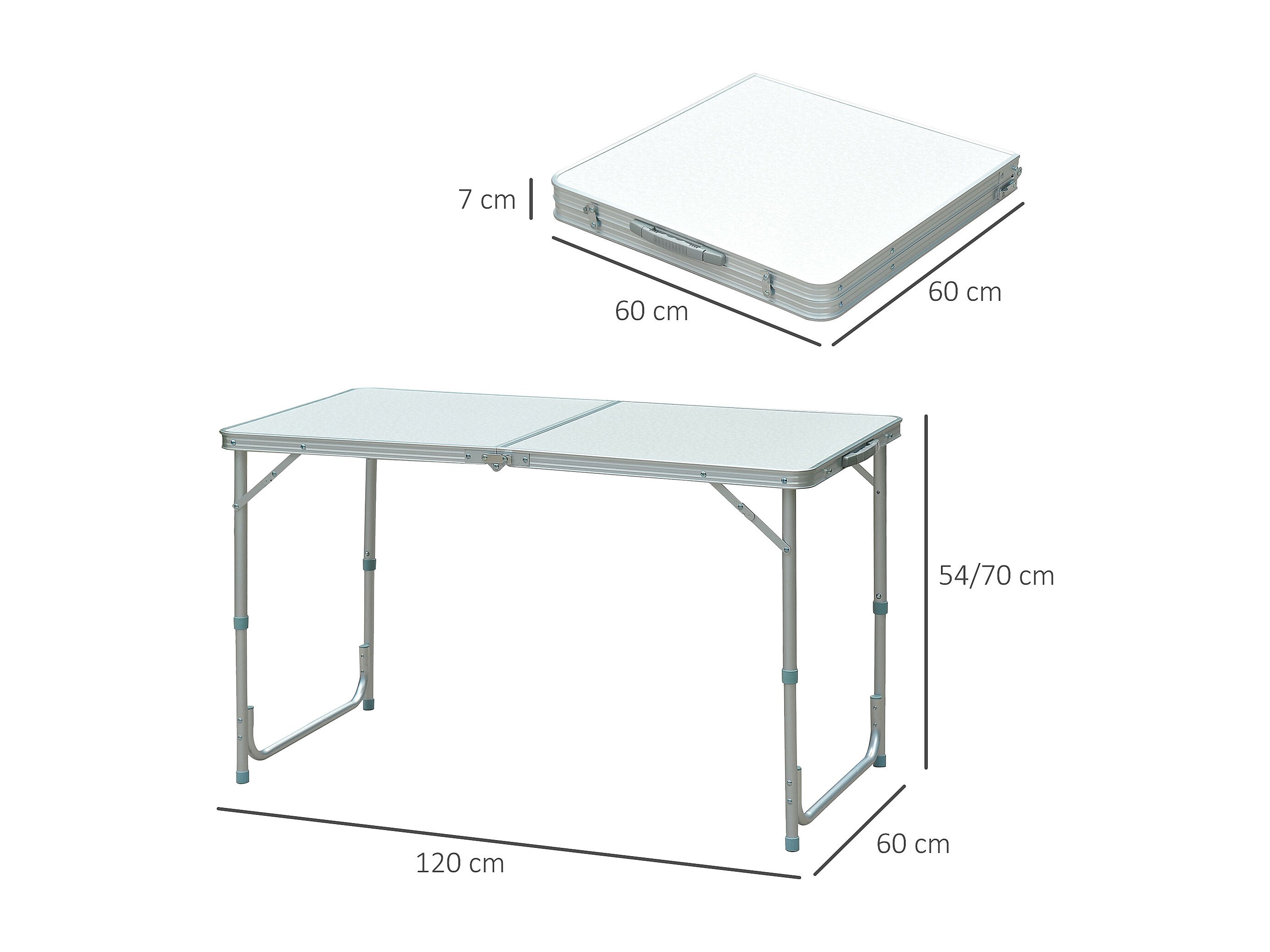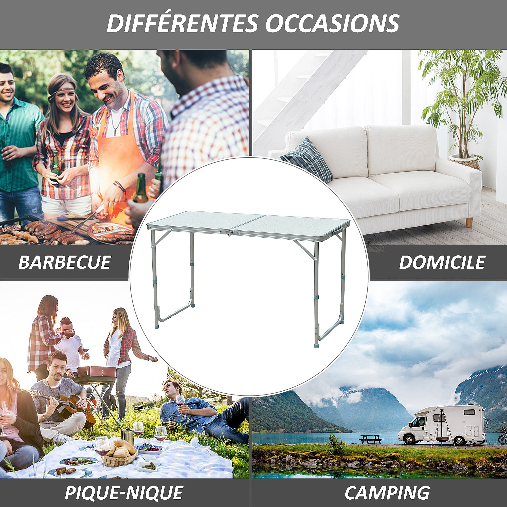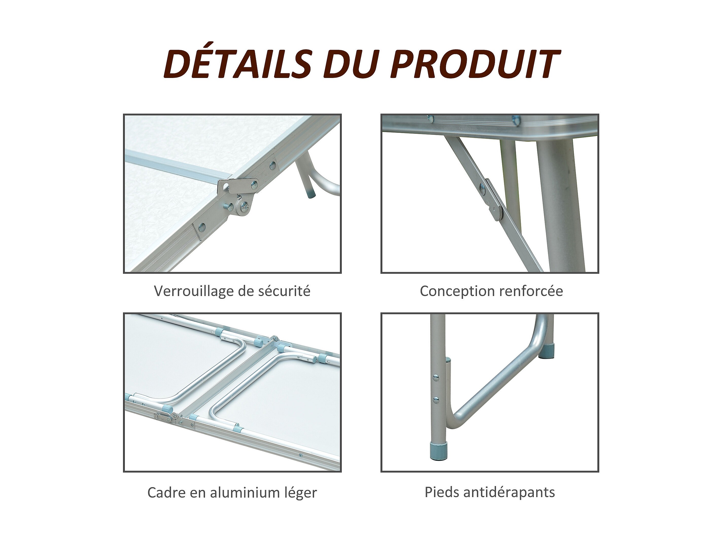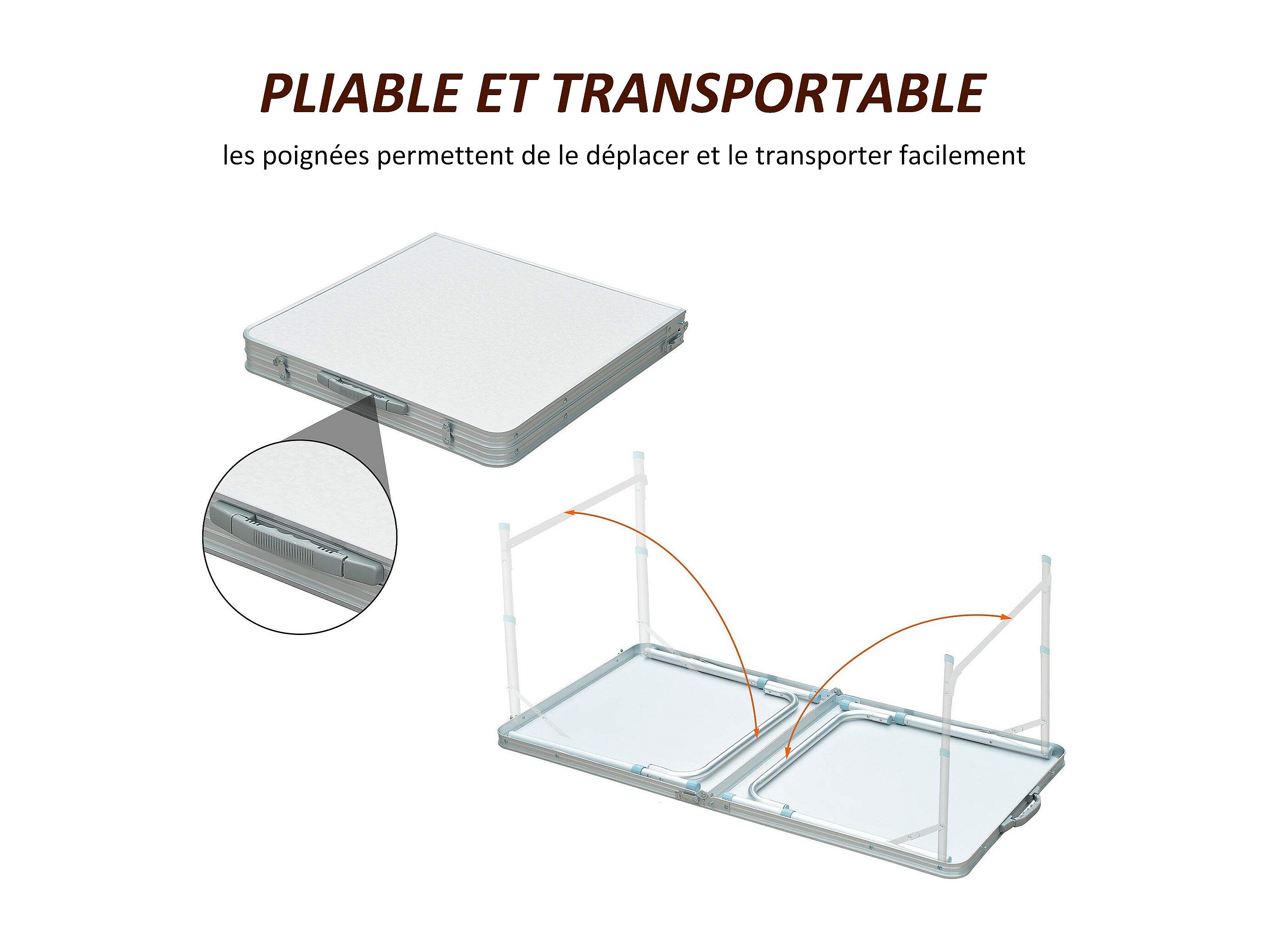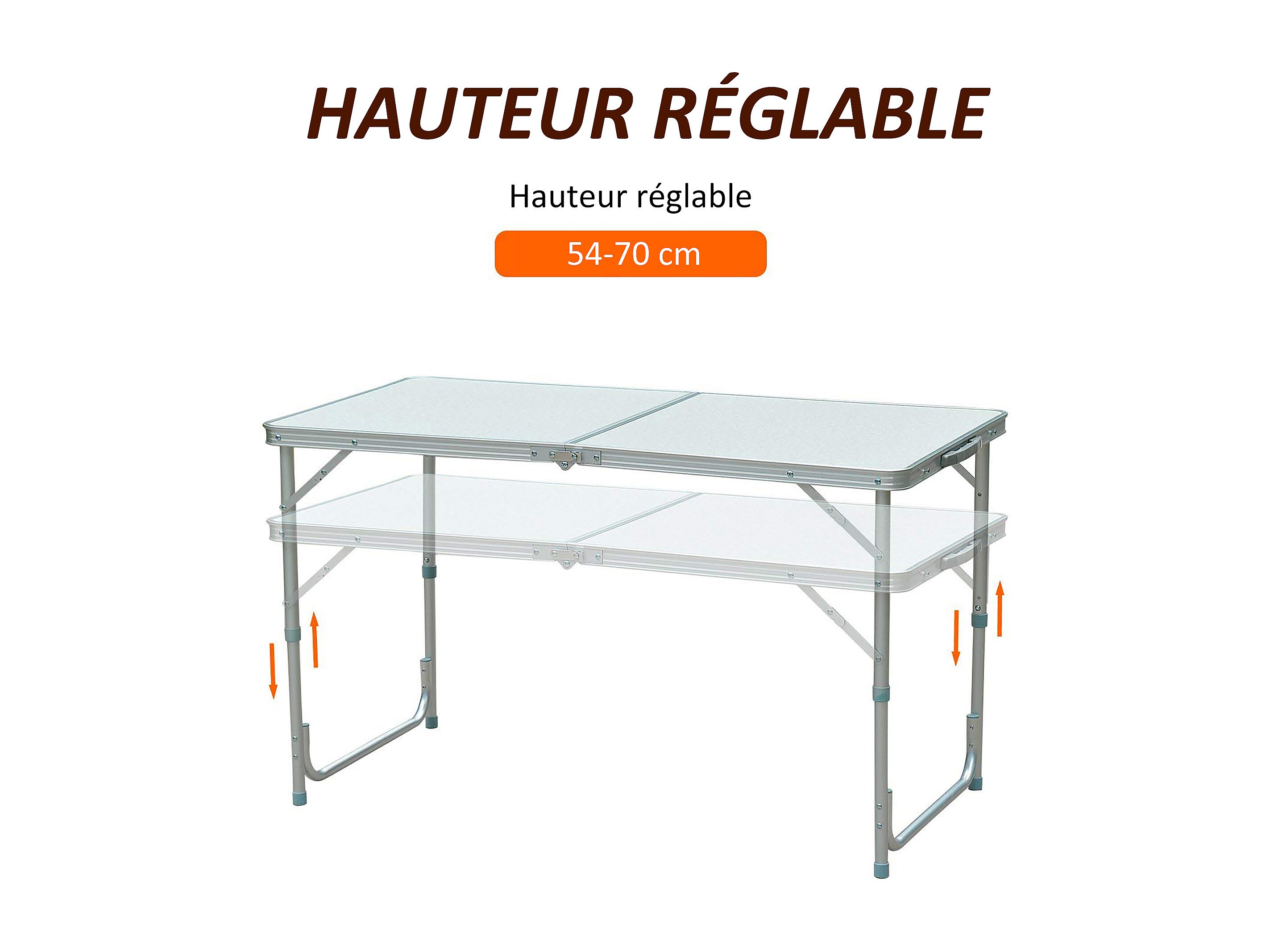 Table pliante table de camping table de jardin hauteur réglable aluminium MDF blanc