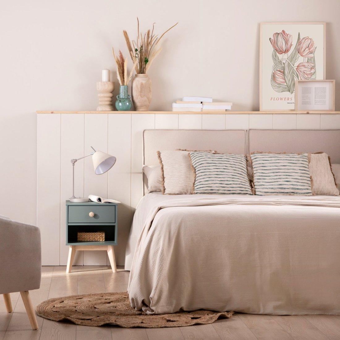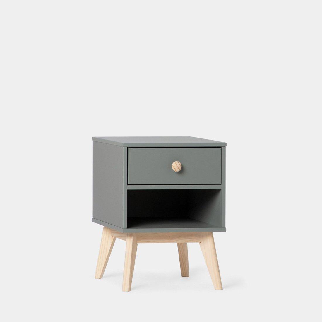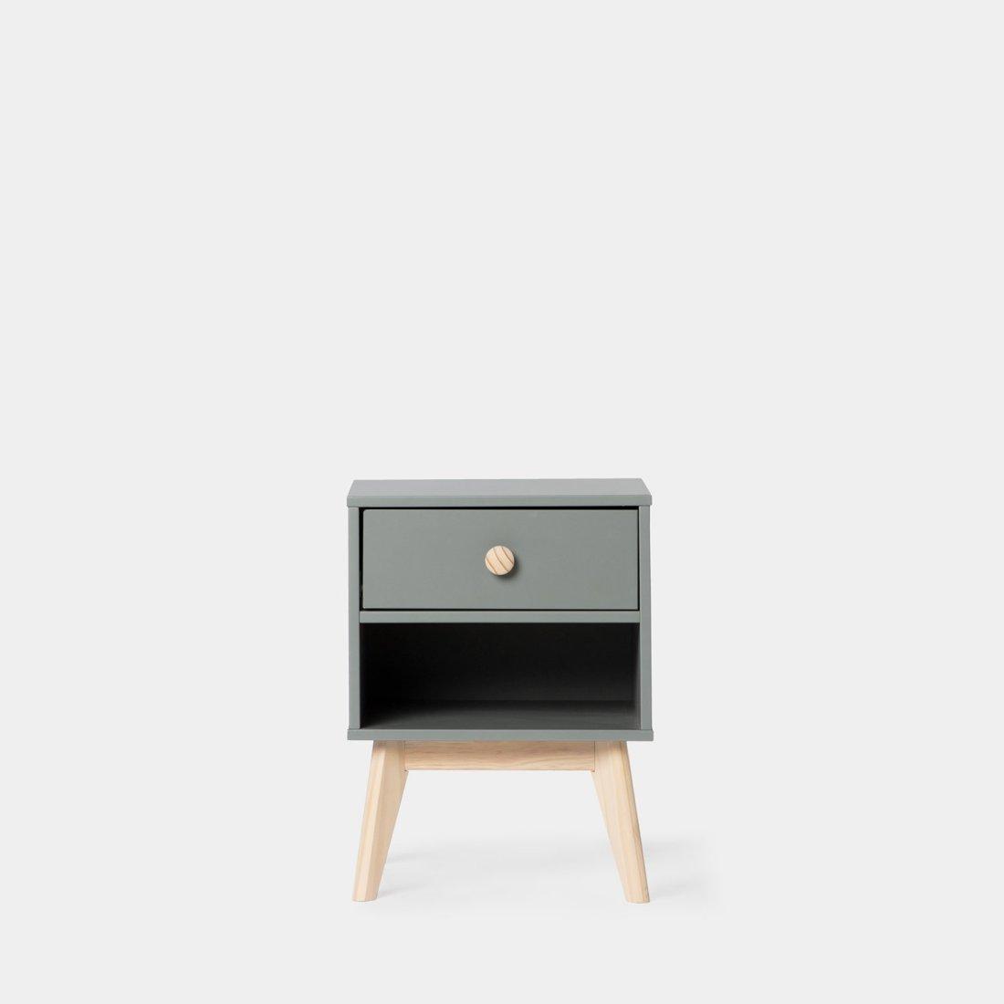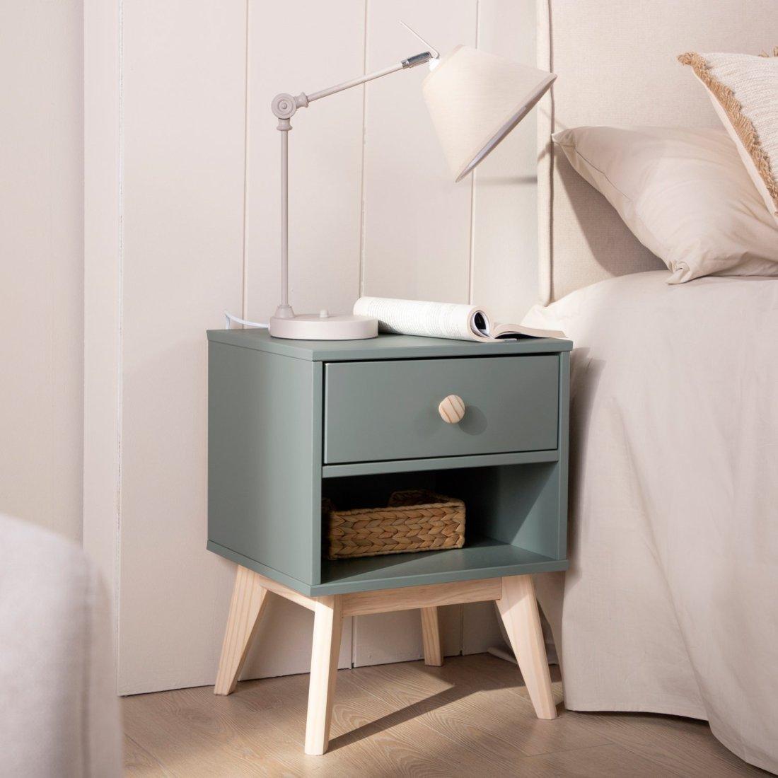 Table de chevet 1 tiroir en laqué vert anthracite 40x53 cm-Luke