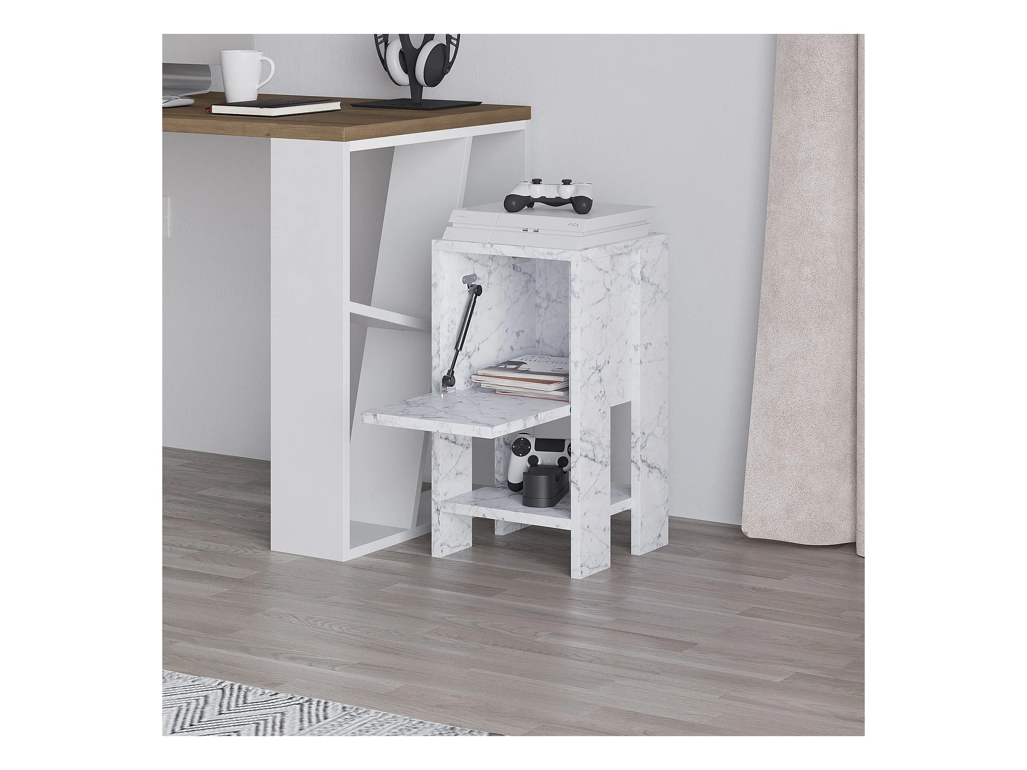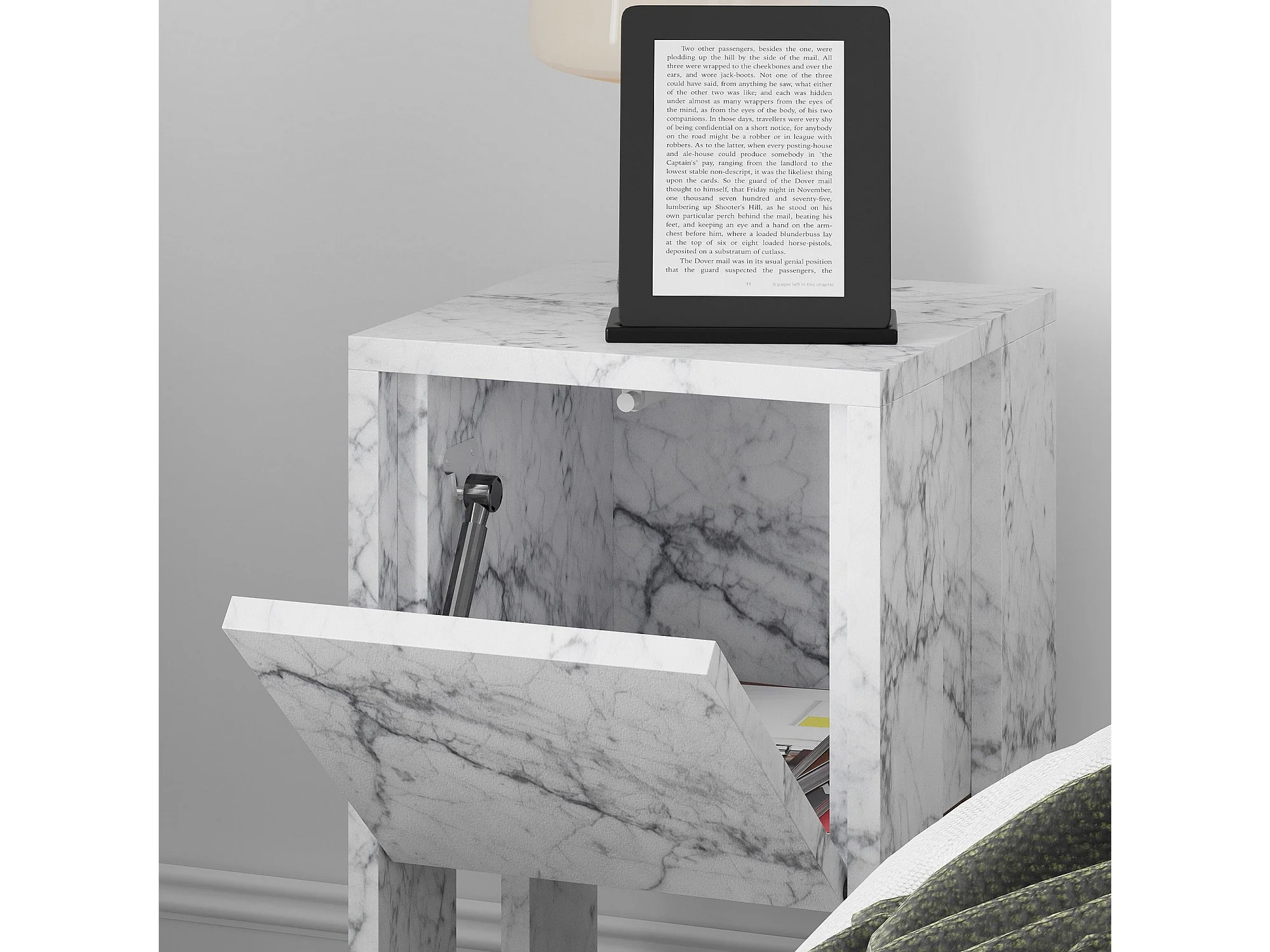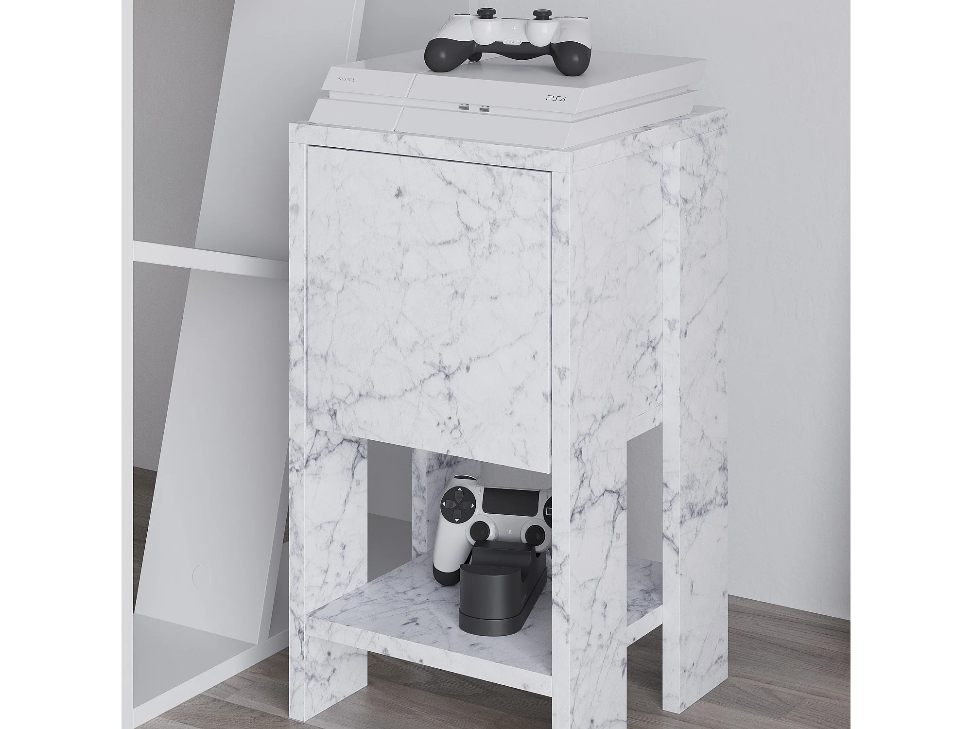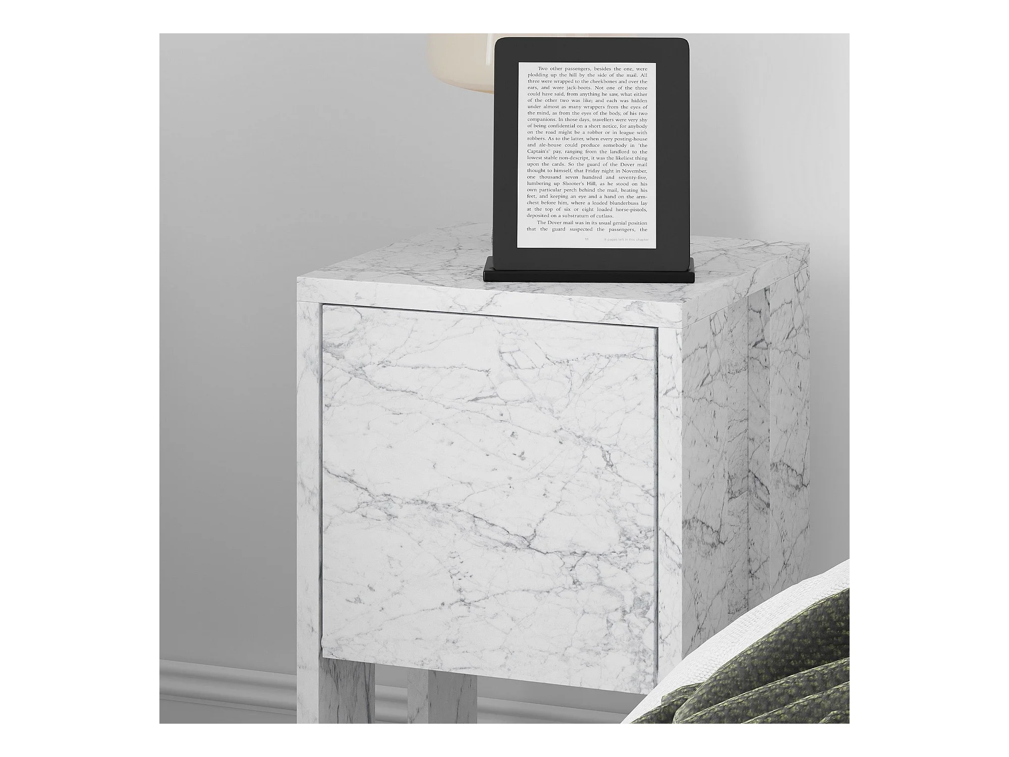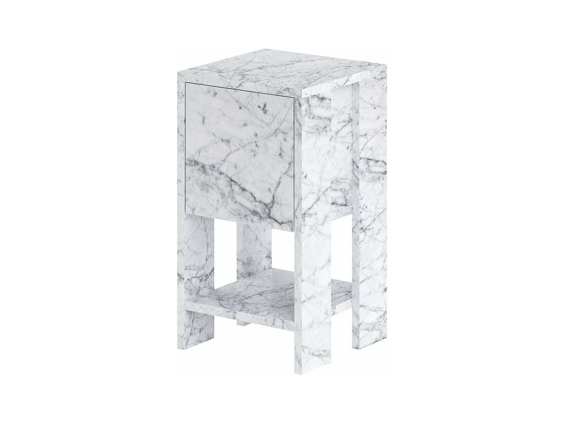 Table de chevet 1 tiroir Stena L30xH55cm Effet marbre blanc