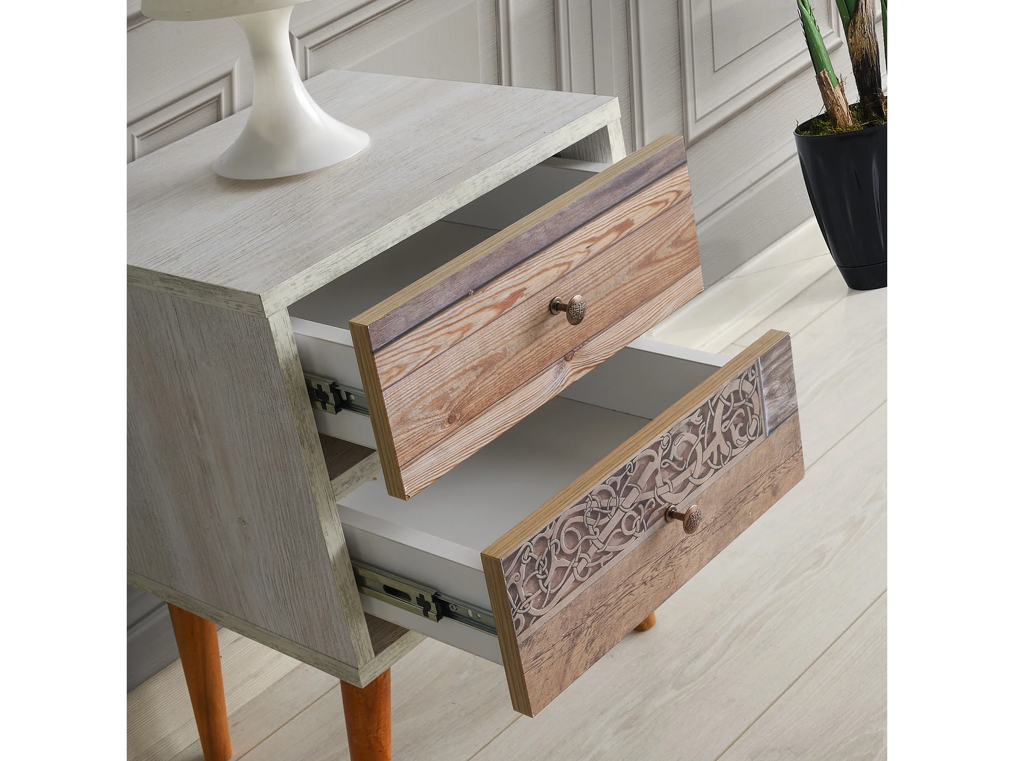 Hanna | Table de chevet avec 2 tiroirs en MDF blanc et brosse nature
