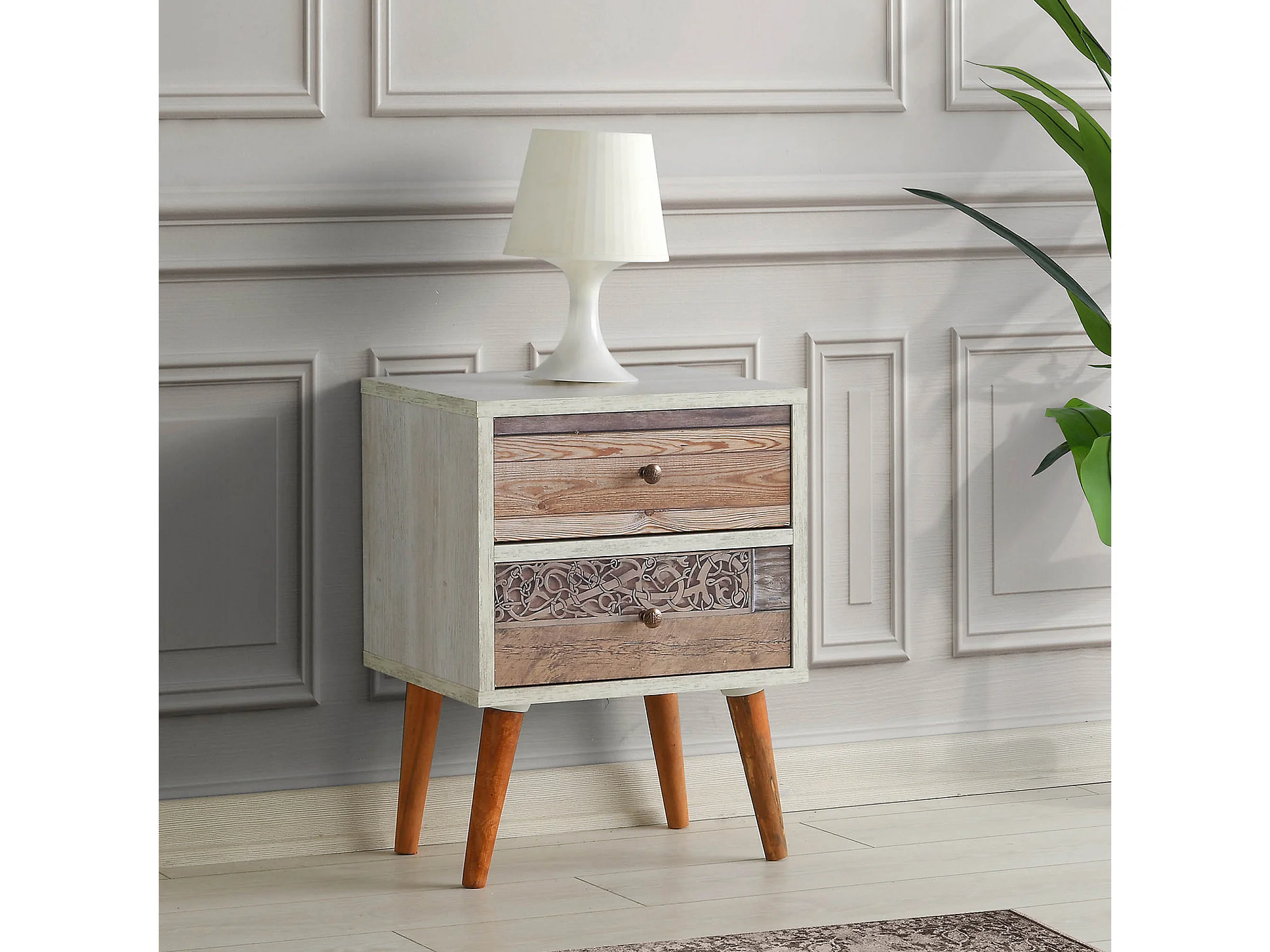 Lorca | Chevet 2 tiroirs en MDF blanc et nature