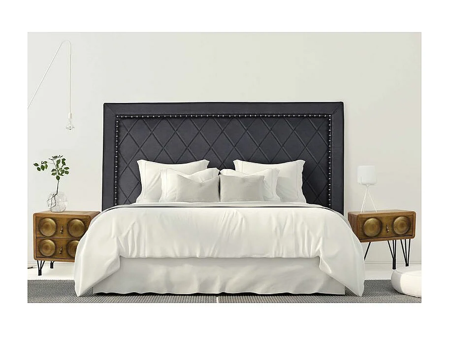 Lit avec tête de lit rangements et tiroirs - 140 x 190 cm - Coloris : Naturel et anthracite - LEANDRE