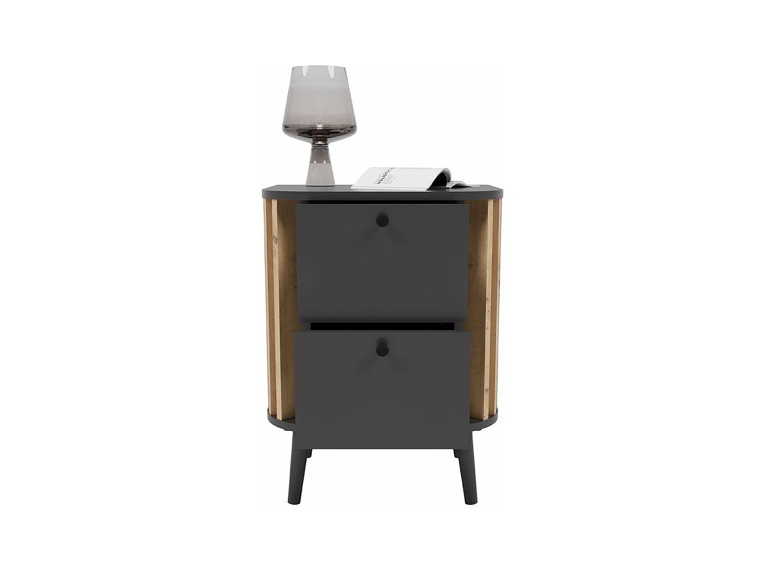 Table de chevet 2 tiroirs gris anthracite et chêne artisan L45 cm - PURE