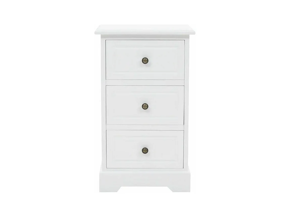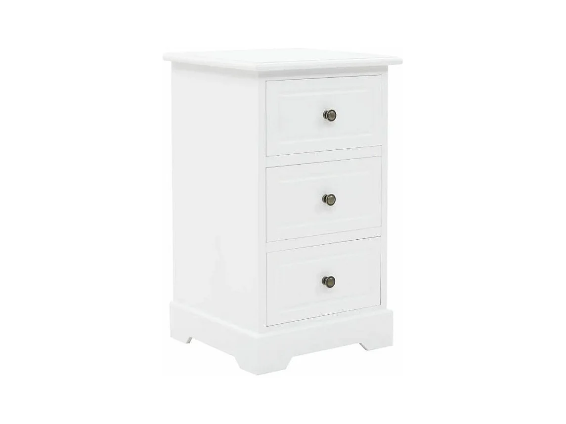 Table de chevet 3 tiroirs pin massif blanc Frenchy