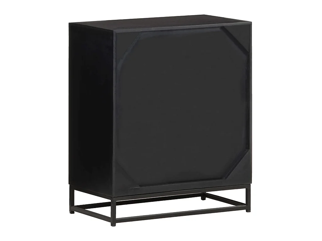 Table de chevet noir 40x30x50 cm bois massif manguier et fer