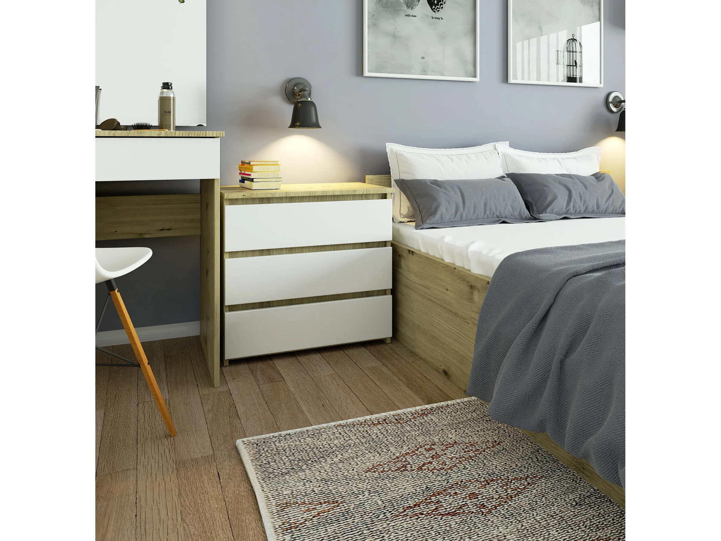 Table de chevet AKORD CL3 Chêne Artisan 60 cm 3 tiroirs façade Blanche 60x35x57 cm