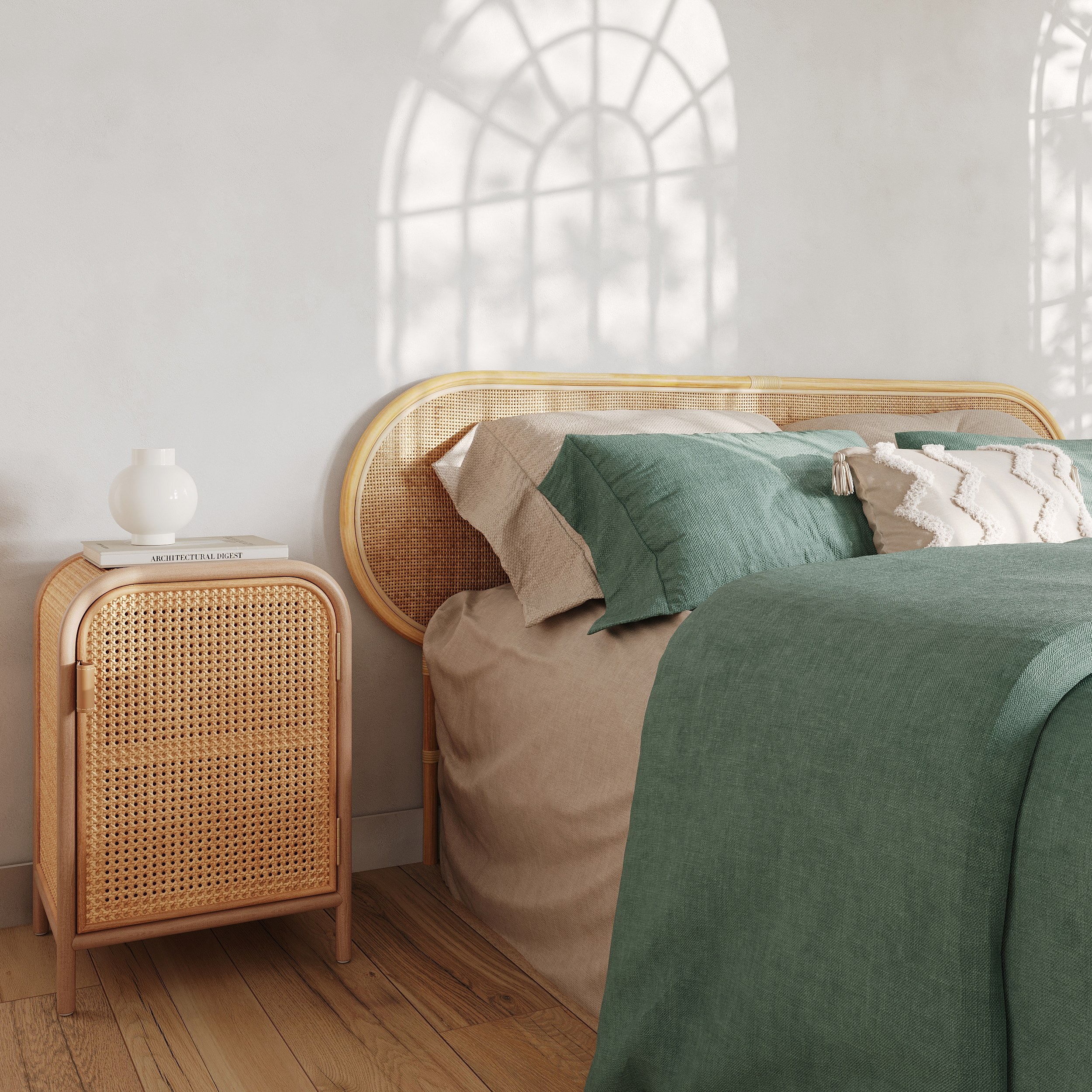 Table de chevet en rotin, 1 porte - Alata