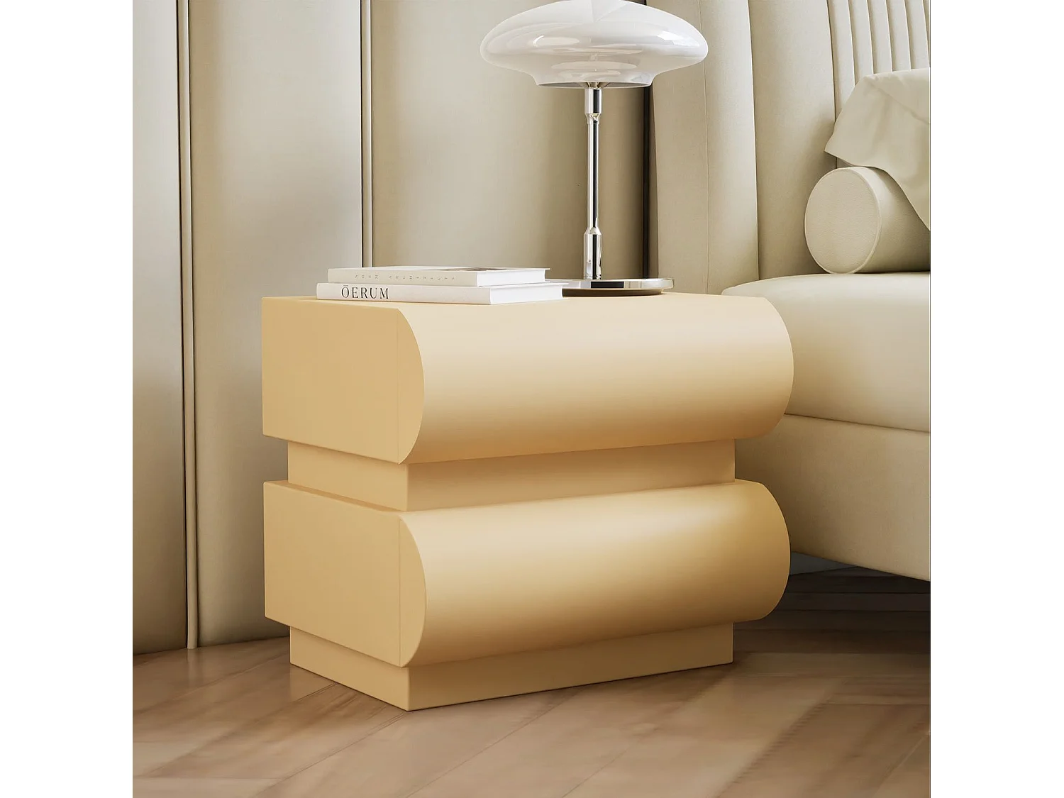 Table de chevet avec 2 tiroirs arrondis L45cm Mezade Beige